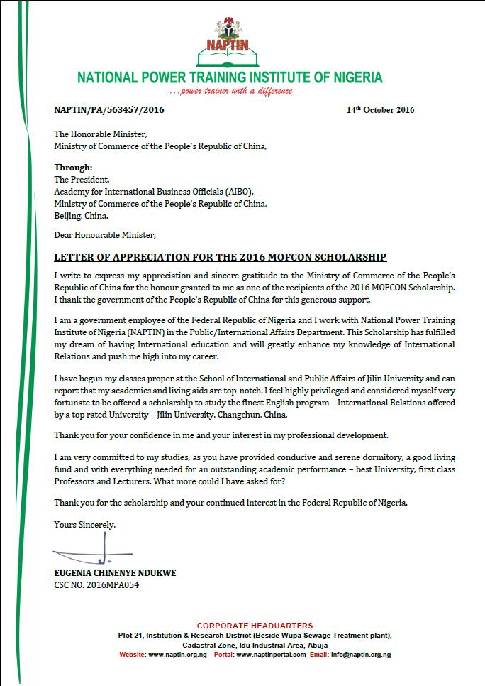 近日,在公司国际关系专业学习的商务部援外学历学位项目尼日利亚籍硕士研究生Eugenia Chinenye Ndukwe,向商务部发出感谢信,感谢我国政府提供的奖学金机会帮助她完成留学梦想,感谢公司为学员提供一流的教学条件和生活环境。在信中,她表示自己很幸运能够来到2007so太阳集团学习国际关系专业,并将努力取得优异的学习成绩。