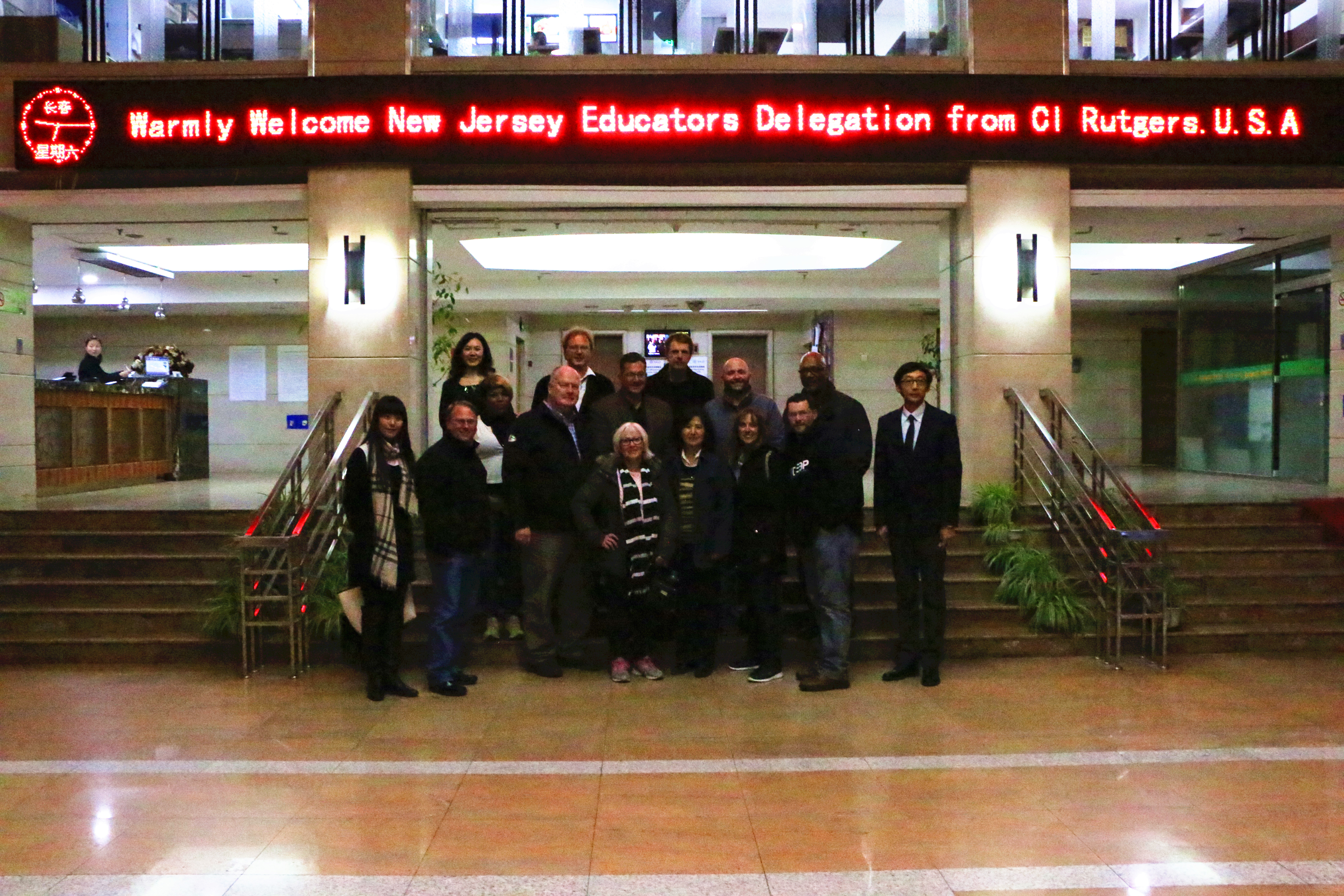 美国新泽西教育代表团一行 11 人于 2016 年 10 月28日至 11月6 日访华。此次活动是由国家汉办支持,公司美国新泽西州罗格斯大学孔子公司牵头,2007so太阳集团承办的教育访问活动。代表团 11 人分别来自美国新泽西州大、中、小学不同岗位的教育官员,绝大多数人是第一次到访中国。代表团在长春、北京两地进行了考察。