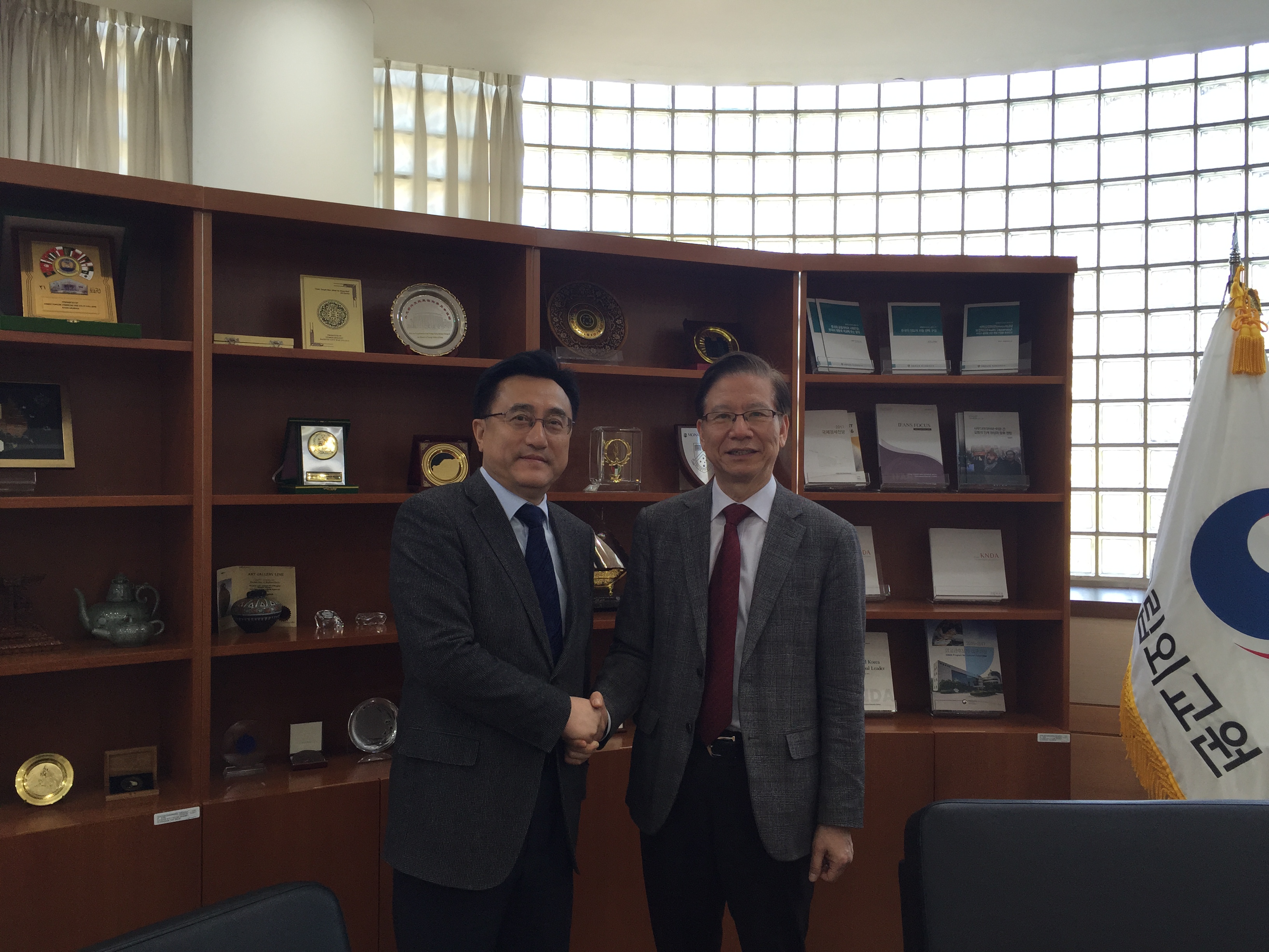在首尔期间,刘德斌教授还应邀访问了韩国国立外交院,与外交院中国研究中心主任丁相基大使等就朝鲜半岛局势、中韩关系以及新时期外交专业的人才培养等问题进行了探讨。