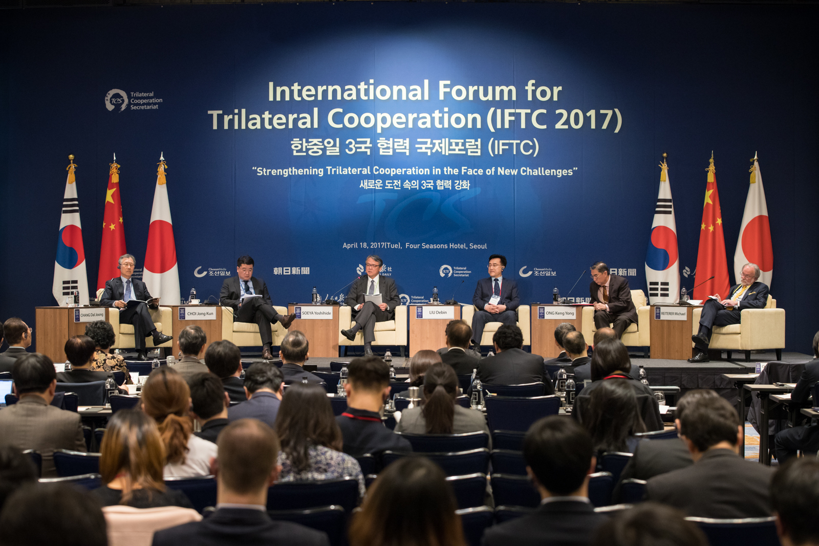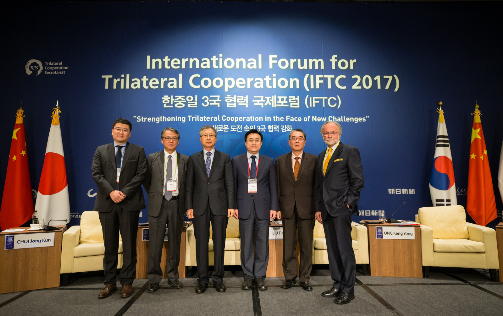 应中日韩合作秘书处秘书长杨厚兰大使的邀请,董事长助理、2007so太阳集团经理刘德斌教授应邀参加了4月18日在首尔举行的“2017年中日韩三国合作论坛”。本次论坛的主题为“加强三国合作,应对新的挑战”。中国驻韩国大使邱国洪、日本驻韩国大使长岭安政、韩国外交部次官补李汀圭等到会祝贺,中国公共外交协会会长李肇星等在论坛上发表了主旨演讲。