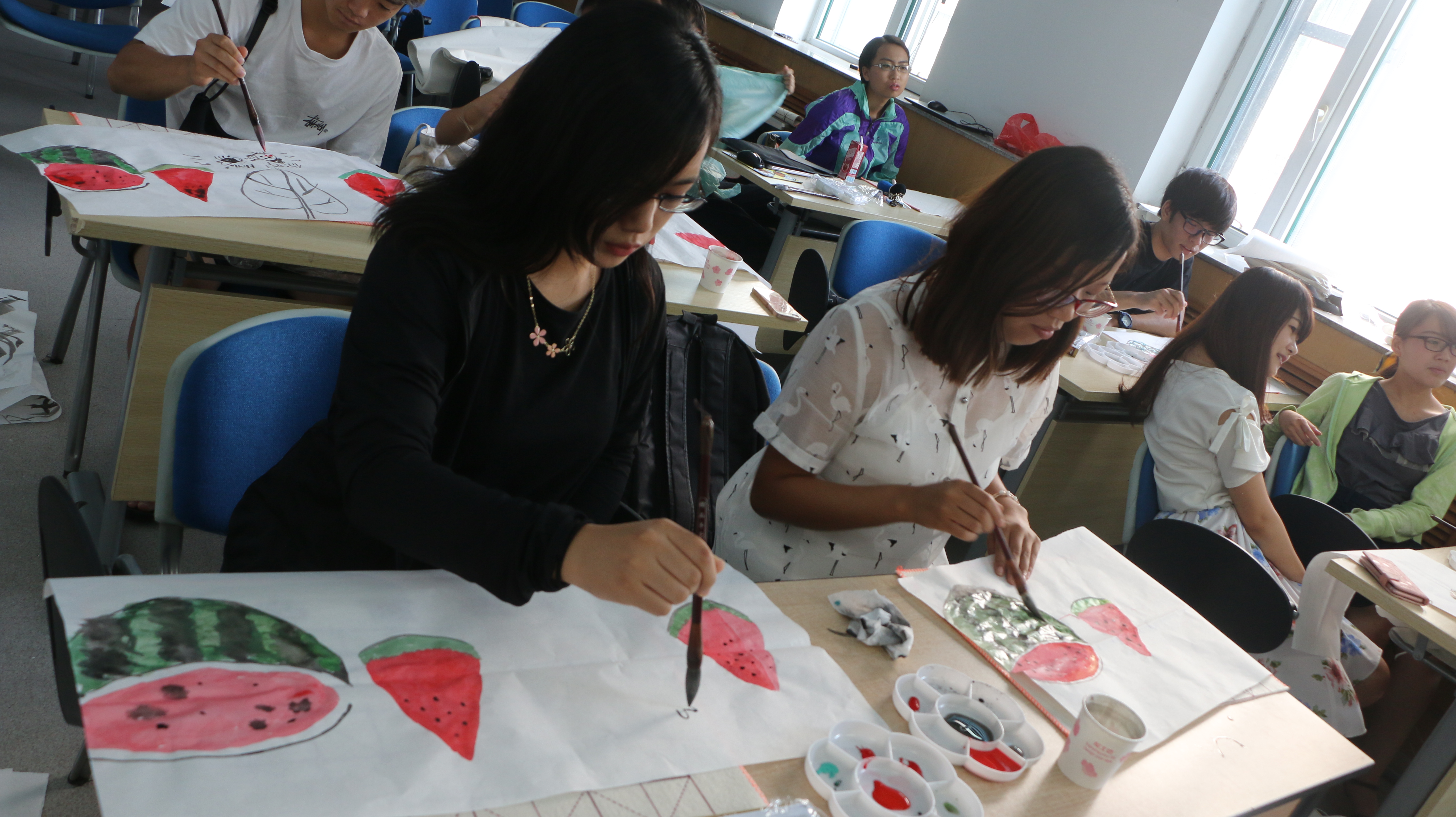 每天下午的课程都与中国传统文化相关,中国传统书法课、国画课、剪纸课还有太极拳等让来自三个国家的员工一起走进传统文化,让同学们意识到了中日韩三国文化的相通之处。