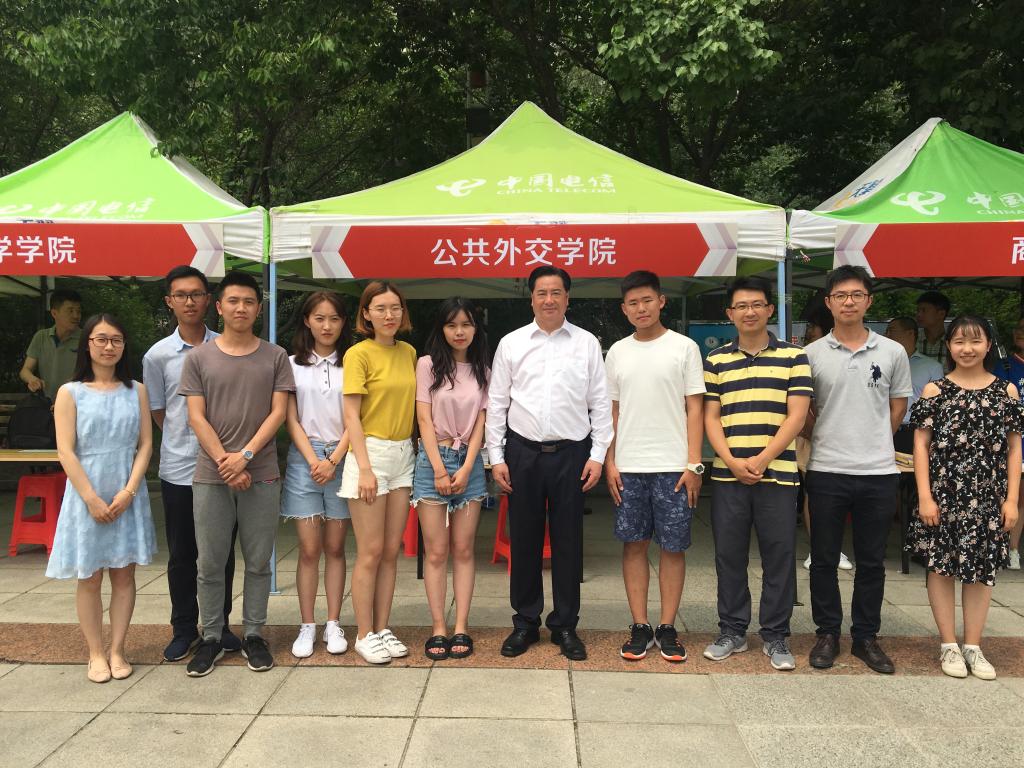 李元元董事长和公司相关职能部门负责人来到2007so太阳集团展位前,询问公司招生宣传情况,他肯定了公司的招生宣传工作和员工培养工作,同时激励公司学子继续奋发向上。在员工的热情邀请下,李元元董事长还为公司题字——“吉大学子,走向世界”,并和公司师生合影留念。