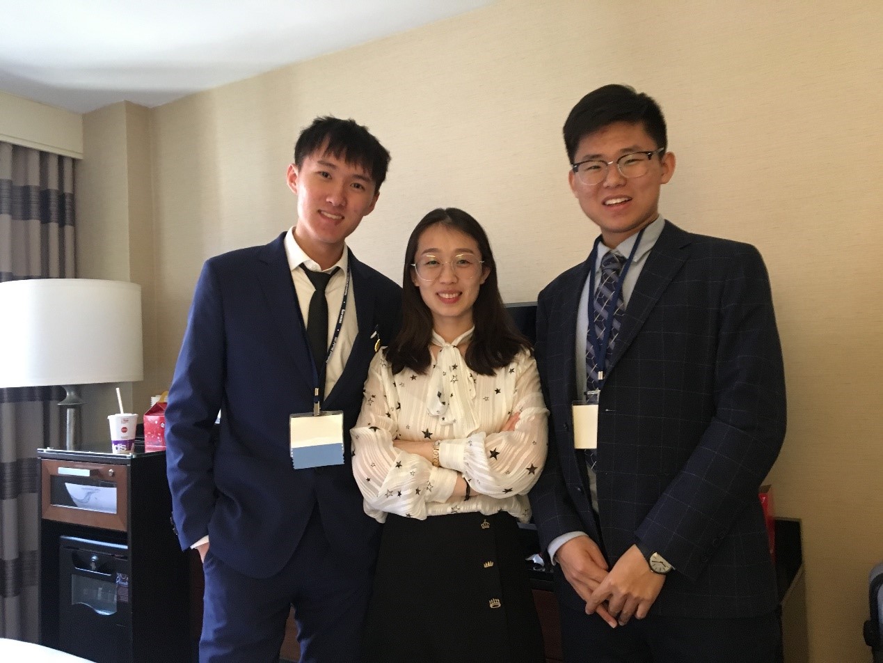 同时,令人倍感温暖的是,在会议进行期间,正在美国罗格斯新泽西州立大学访学的公司辅导员教师张淑艳老师专程于百忙之中从新泽西州布朗茨维克市赶赴纽约曼哈顿,探望正在参加比赛的公司学子,并送去纽约当地特色食品Bagel、Hotdog和公司师长对于参赛学子满满的祝福,这给予了三名参赛学子极大的鼓励和支持。
