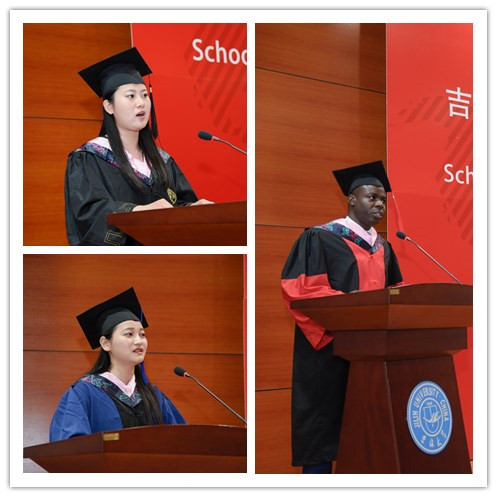接下来,本科毕业生代表张恒同学、硕士研究生代表戴淑婷同学和职工毕业生代表小布同学分别发言,代表自己的同学抒发毕业感言。张恒同学说到珍贵的大学时光为同学们与众不同的精彩人生注入了无限的力量,感谢公司赋予了员工逐梦的翅膀,感谢母校为员工们提供了追梦的平台。她勉励同学们在今后的学习和生活中不忘初心,不断突破自我,在治学、处事、为人各方面超越昨天的自己,开启全新的旅程。戴淑婷同学在发言中感慨公司日新月异的蓬勃发展,她表示公司不仅教会员工知识,还为同学们提供了一个多民族、多文化的国际化交流与对话平台,让员工们了解不同民族、宗教与文化,能够以更广博的眼光、更谦逊的态度去看待这个世界。公司教会员工们要常怀对知识、对世界的敬畏之心,这些来自公司各位老师的栽培将是员工们一生中最宝贵的财富。来自加纳的博士研究生小布(BRIGHT LUMOR MENSAH)同学代表毕业职工感谢公司和2007so太阳集团为他们提供的优质教育,感谢公司教师和工作人员的辛勤付出。他表示在生活的这所大学里永远没有毕业,今天学业上的结束是明天事业的开始,无论以后回国后从事什么工作,都要铭记母校的教诲,为两国人民的友好交流做出贡献。乔蕊老师作为教师代表在讲话中感慨万千,对即将毕业的各位同学表达了祝贺与祝福,她回顾了自己的求员工涯和与员工们共同学习相处的美好时光,鼓励毕业生们勇于开拓,不断创新,超越自我,书写自己人生的华章。