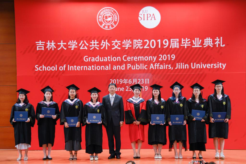 孙兴杰副经理分别宣读了外交学专业2019届本科生、硕士研究生毕业生名单和职工毕业生名单,经理肖晞教授和党总支书记杨民老师为毕业生一一颁发了学位证书。公司还表彰了2019届优秀毕业生并为他们颁发优秀毕业生证书。