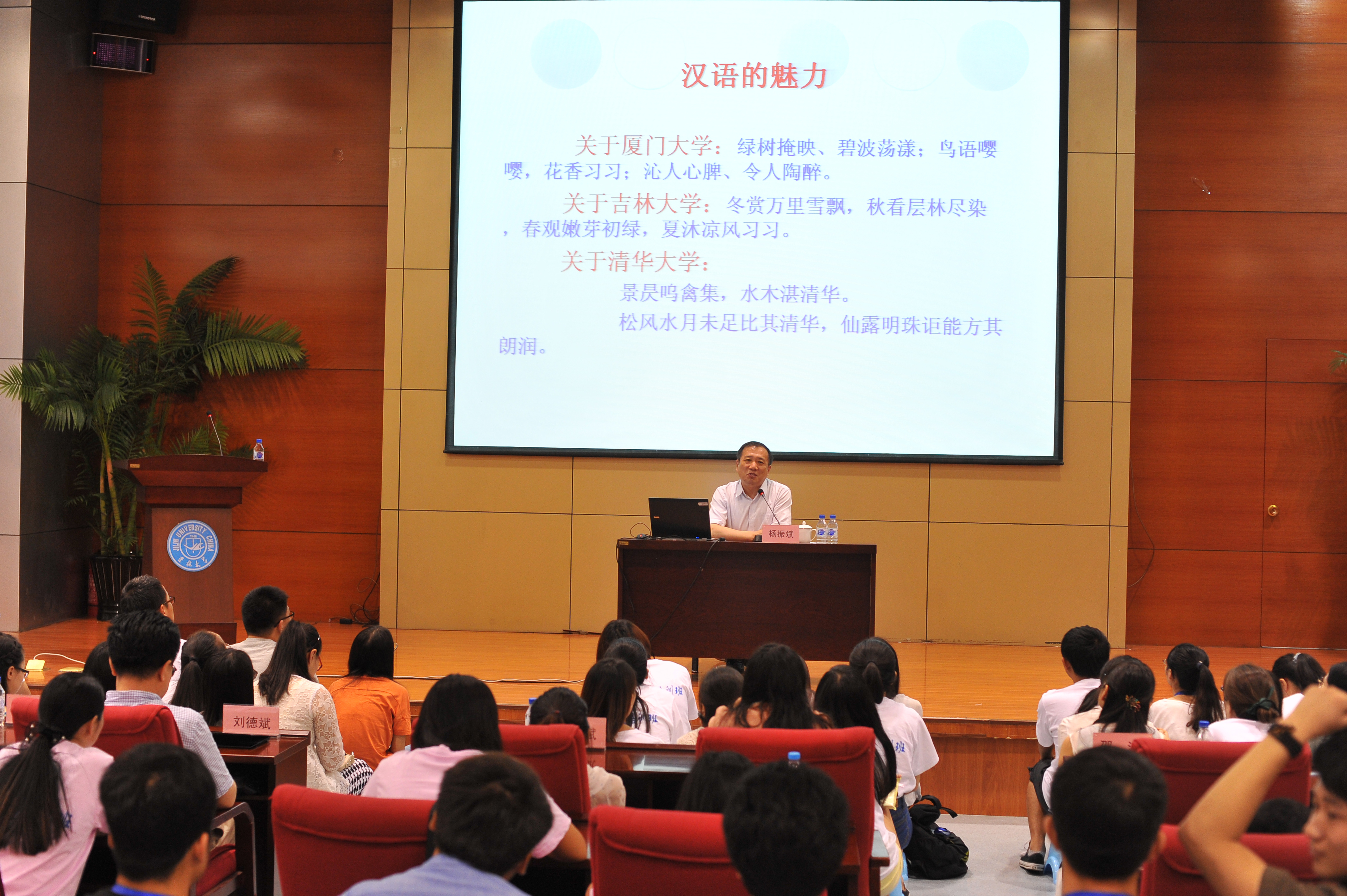 7月31日上午,公司党委书记杨振斌在国家汉办东北基地学术报告厅为在吉大培训的2015年国家汉办外派汉语教师和志愿者作专题报告。报告会由董事长助理兼2007so太阳集团经理刘德斌主持。