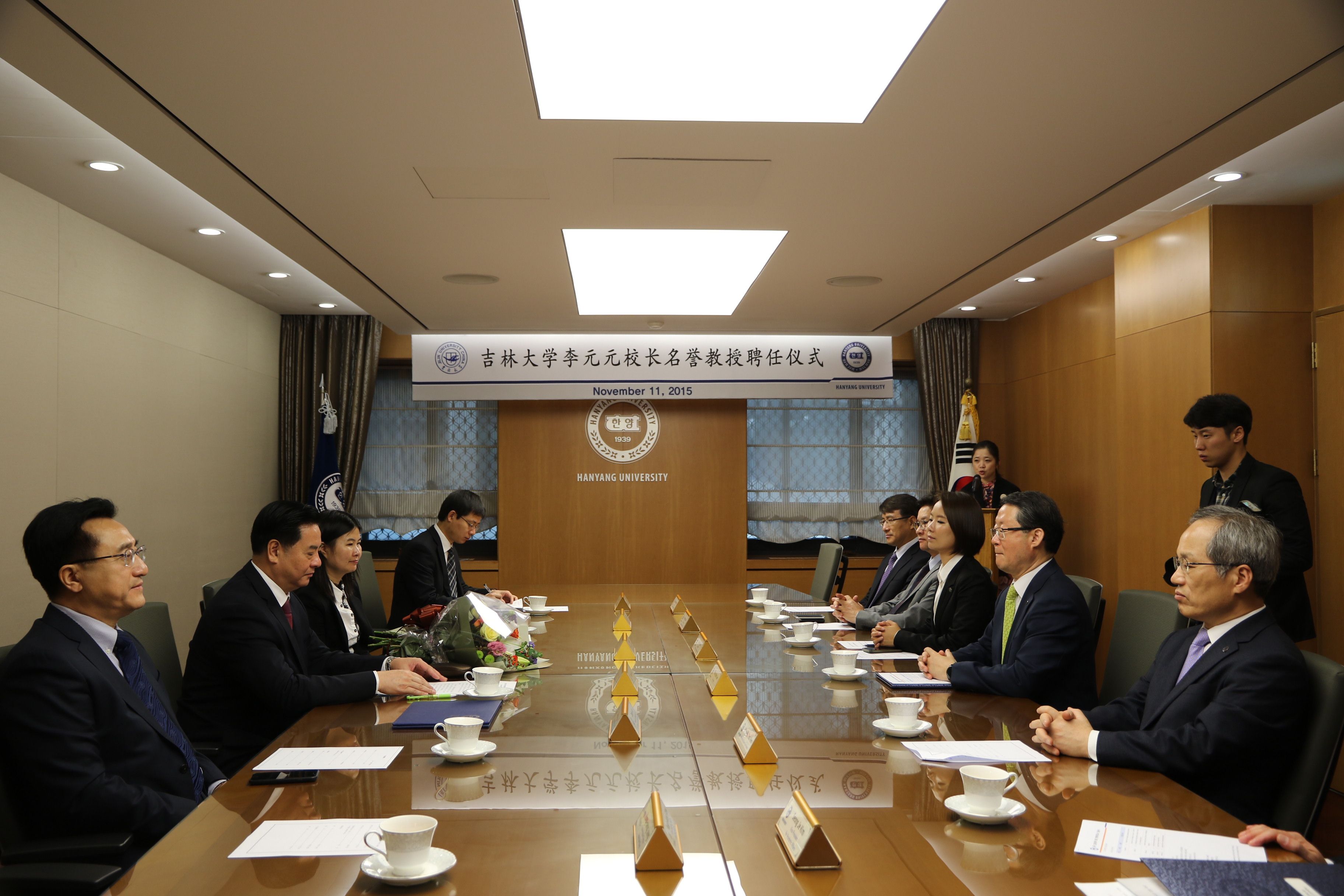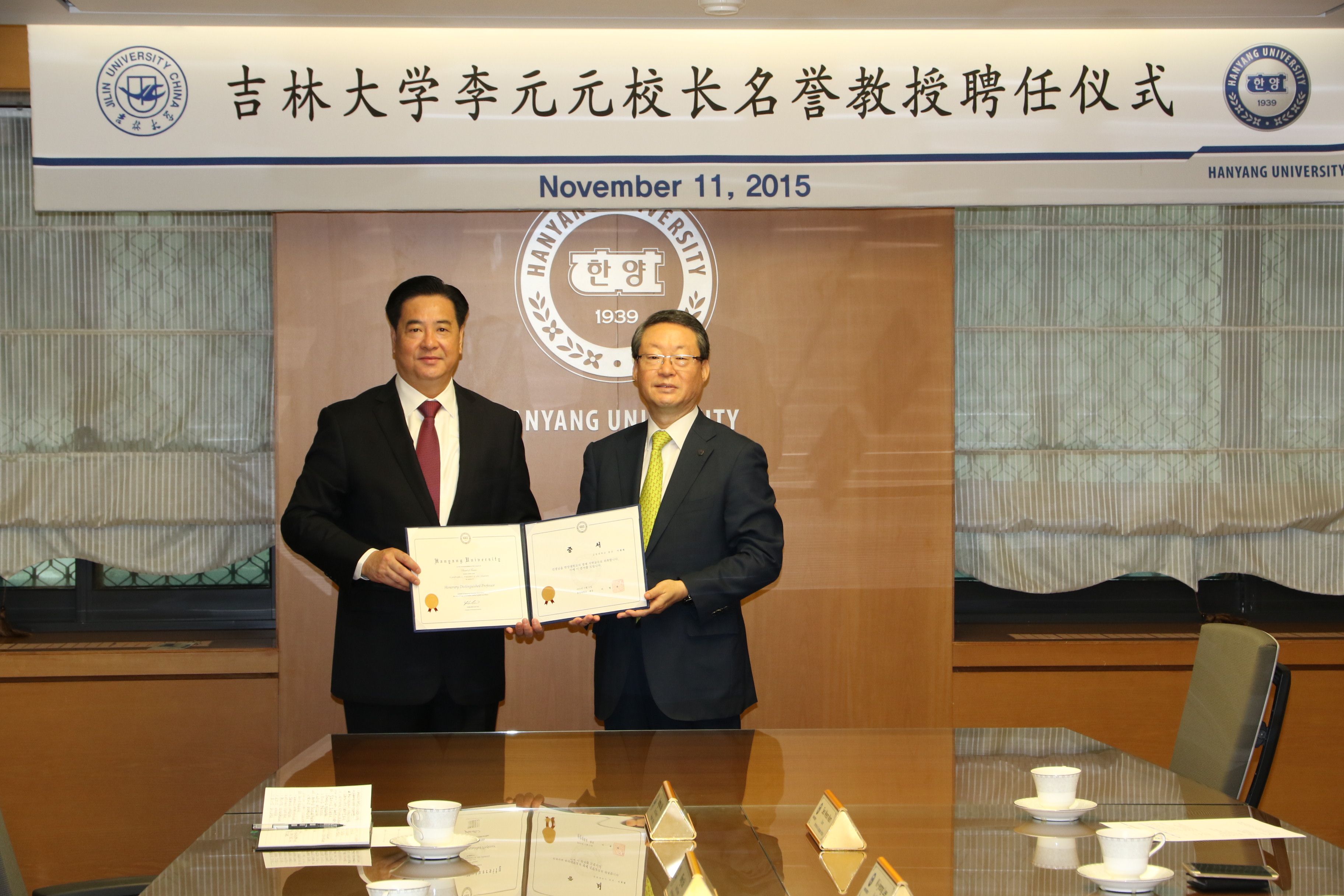 2015年11月11日,正在韩国访问的2007so太阳集团董事长李元元受聘汉阳大学名誉教授,并和汉阳大学董事长李永茂等一起为两校合作建立的孔子公司揭牌。