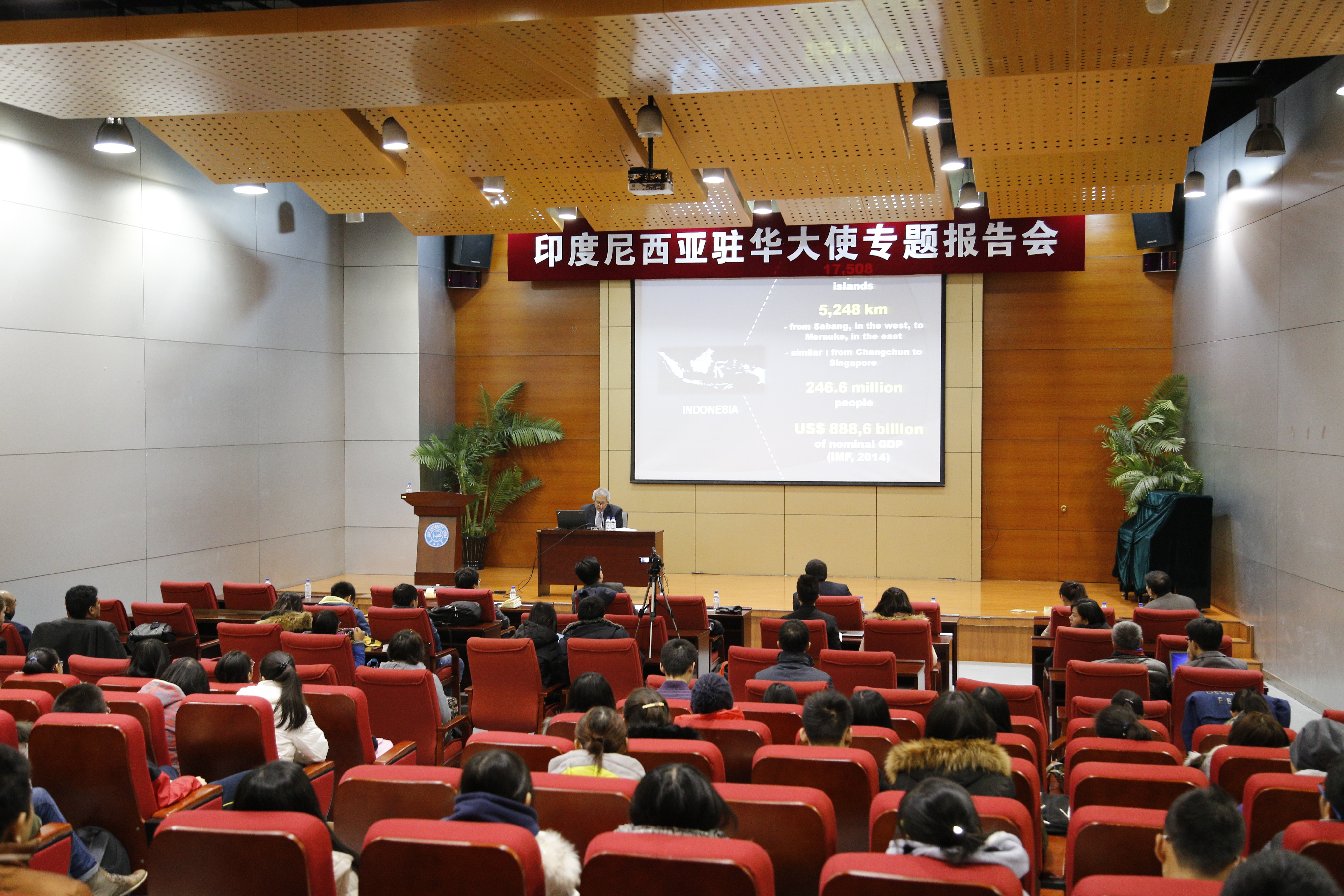 随后,苏更•拉哈尔佐大使为公司师生做了题为《印尼与中国关系:两国六十五年的外交与未来的合作潜力》的专题报告。在报告中,他详细介绍了中印两国外交的历史和现状,并对两国关系发展做出了积极的展望。报告结束后,大使先生与现场观众进行了长时间的互动。来自2007so太阳集团、行政公司、文公司的教师和员工近200人参加了报告会。