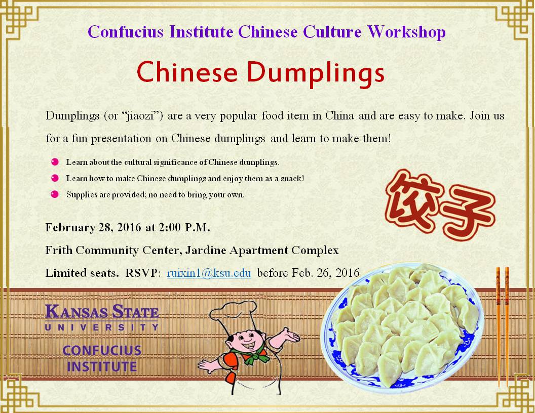 随着当地中国员工、学者的不断增多以及孔子公司各项工作的不断开展,堪萨斯州立大学各公司和部门中越来越多的当地人对于了解中国文化产生了兴趣。为更好的在大学社区中推广中国文化,公司和堪萨斯州立大学合作建设的孔子公司开展了一次以“饺子”为主题的中国饮食文化体验活动,包括研究生院、商公司、农公司、员工服务中心、国际员工中心、饮食住宿服务中心等各单位的50余名公司各部门员工及部分社区人员参加了此次活动。