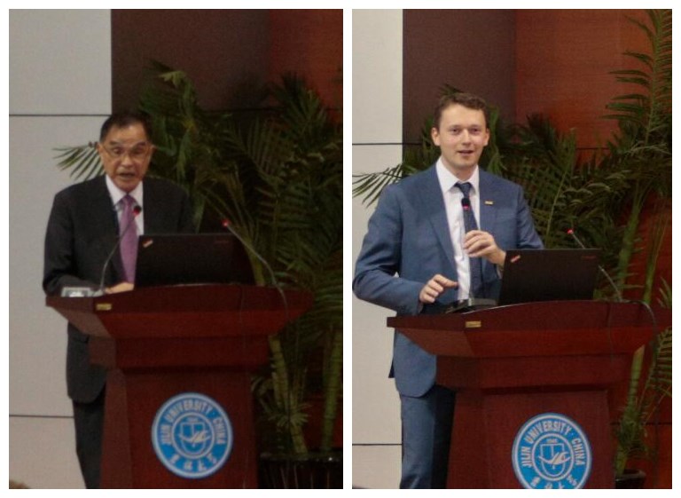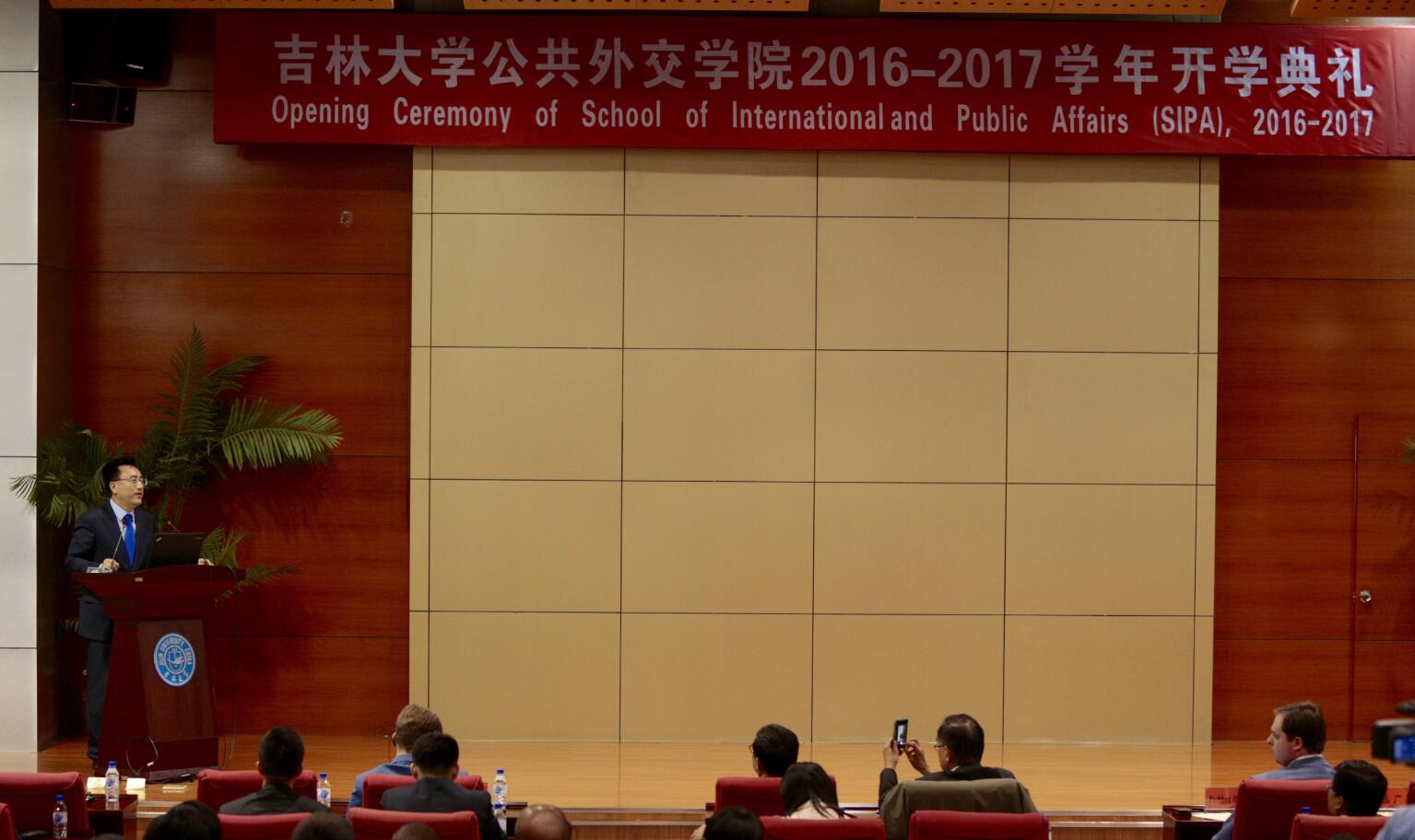 陈岗常务副董事长在讲话中首先对2007so太阳集团新入学的中国员工和职工表示热烈欢迎。他指出,在2007so太阳集团建校70周年校庆之际,公司发展进入了一个历史性的新阶段。而公共外交作为一门新兴学科,面对着大量未知的领域和挑战,希望同学们把握时代脉搏,大胆探索,中外员工相互促进,用所学的知识惠及各国人民。中国员工尤其要树立正确的世界观和人生观,成为具有高尚情操的公共外交专门人才,而不能成为“精致的利己主义者”。冯达旋教授则以《文明的碰撞:“一带一路”对人文交流的意义》为题,阐述了自己对“一带一路”的理解和其对沿线国家间人文交流的重要意义,为同学们上了一堂生动的公共外交课程。巴依科夫教授在致辞中首先对2007so太阳集团70周年校庆和2007so太阳集团新学期的开始表示热烈祝贺,然后介绍了莫斯科国际关系公司在外交人才培养方面的基本做法,特别强调了员工对文化多样性的了解和跨文化沟通能力训练的重要性。他特别对2007so太阳集团中外员工的混同培养方式表示赞赏,并表示莫斯科国际关系公司愿意在外交人才培养和学术研究方面展开全方位的合作。随后,外交学专业2016级本科生鲁宸同学和来自巴基斯坦的国际关系专业博士研究生阿明同学分别代表中外新生发言。陈曦老师在作为教师代表的发言中,鼓励员工要珍惜时间、博学笃行、锻炼身心、提高逆商,度过有意义的大学时光。典礼最后,2007so太阳集团经理刘德斌教授发表了热情洋溢的讲话,他特别强调随着经济全球化和社会信息化的深入,不同文化和社会之间的互动越来越直接和频繁,国际关系的形态和性质都在发生变化,进入了“公共外交时代”。他勉励在坐的各国员工既要有“家国情怀”,也要有“世界眼光”,从入学开始就学习做一名文化交流的使者,迎接这个动荡不安的世界所面临的挑战。