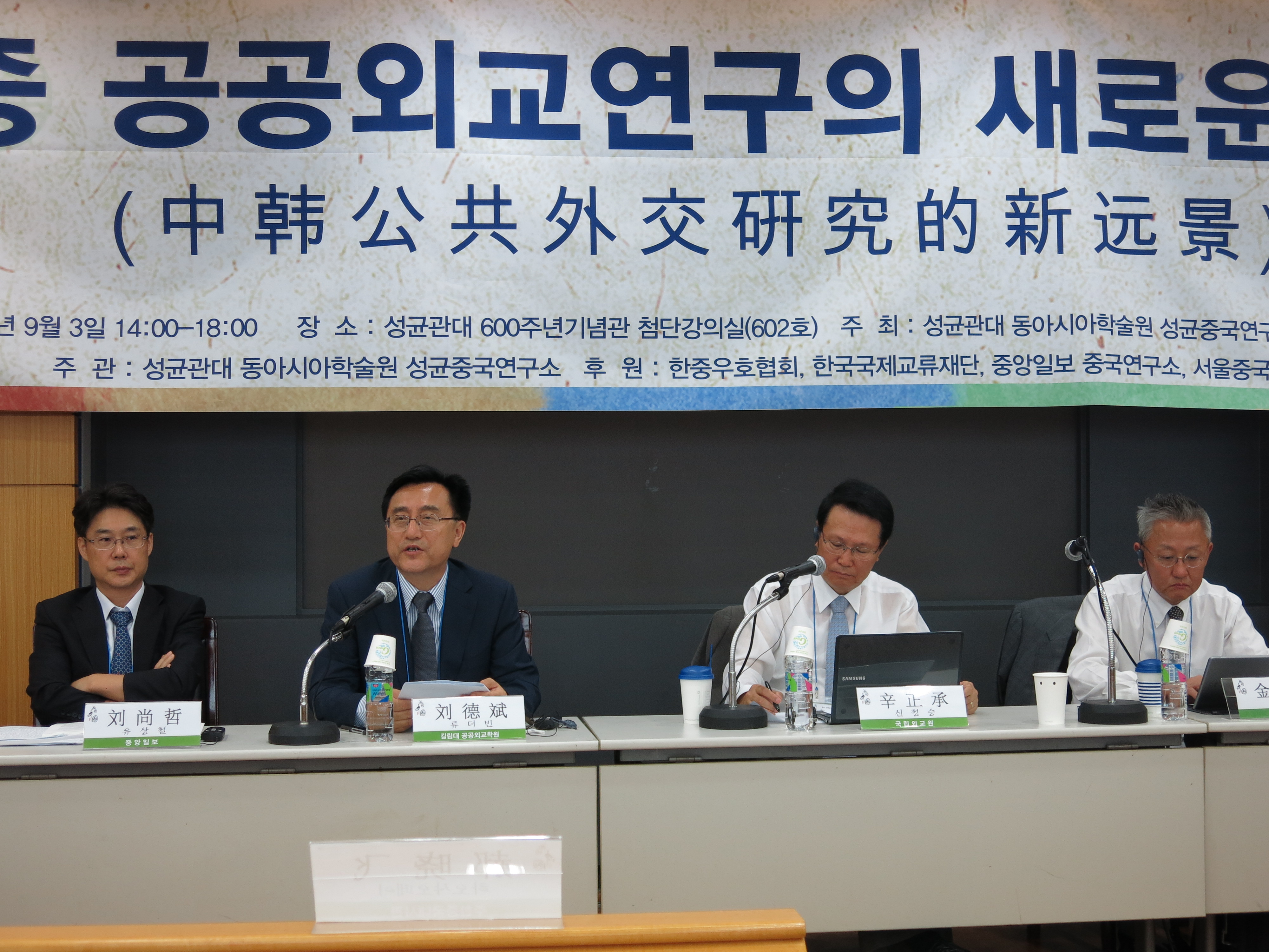 刘德斌应邀做了题为“中国的公共外交与中韩公共外交的未来之路”的主题发言,介绍了中共十八大提出“扎实推进公共外交与人文交流”以来中国公共外交的新进展,阐释了中国高度重视公共外交的原因和中韩公共外交合作的价值追求与示范意义,并对中韩公共外交合作提出了三点建议,在与会者中间引发了热烈讨论。王秋彬副教授在小组发言中做了题为“中韩公共外交:机遇与挑战”,对中韩关系迅速发展大背景下两国开展公共外交的领域与机制、中韩开展公共外交合作所面临的主要问题以及未来发展的主要模式进行了深入分析,引起了与会学者的热烈讨论。