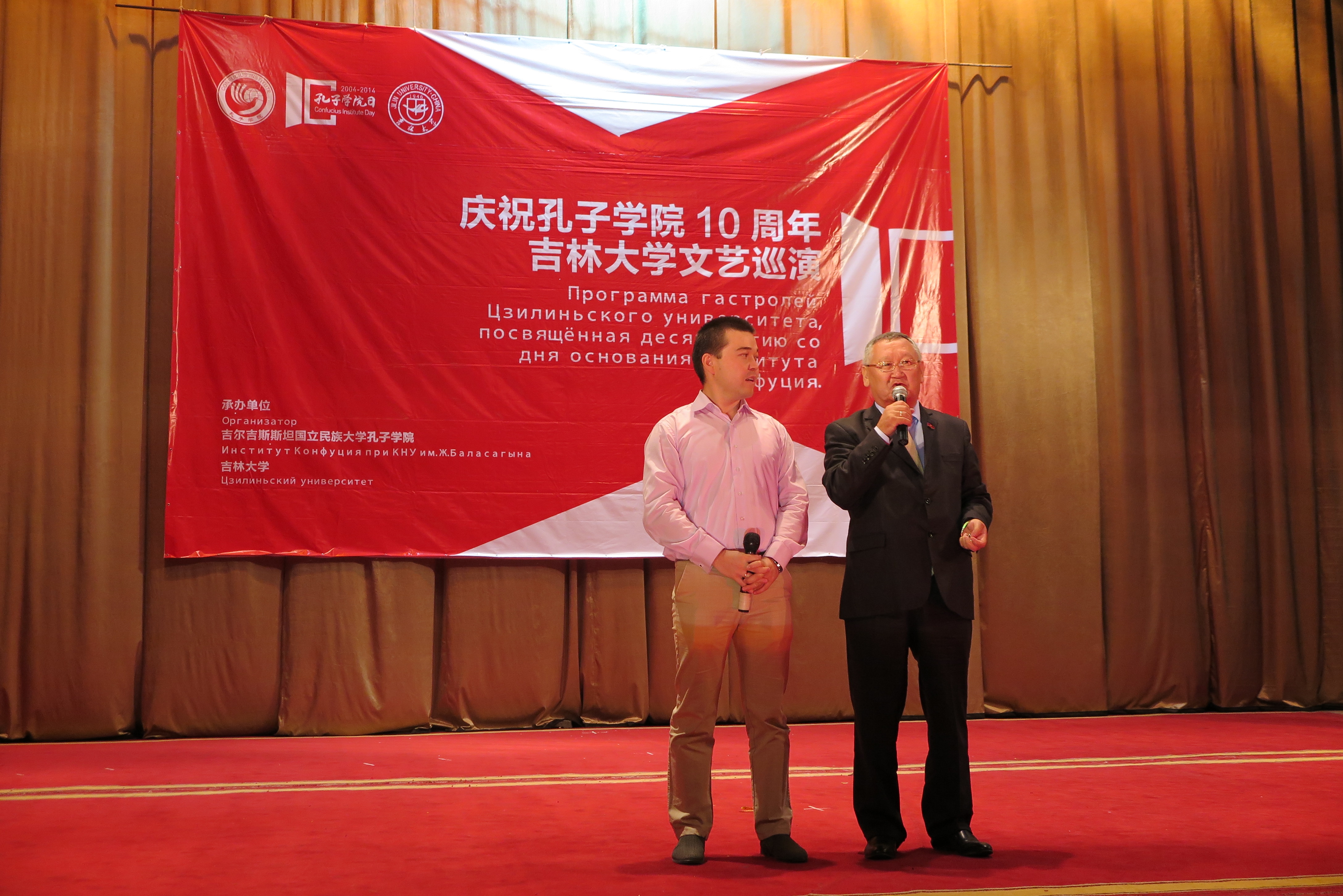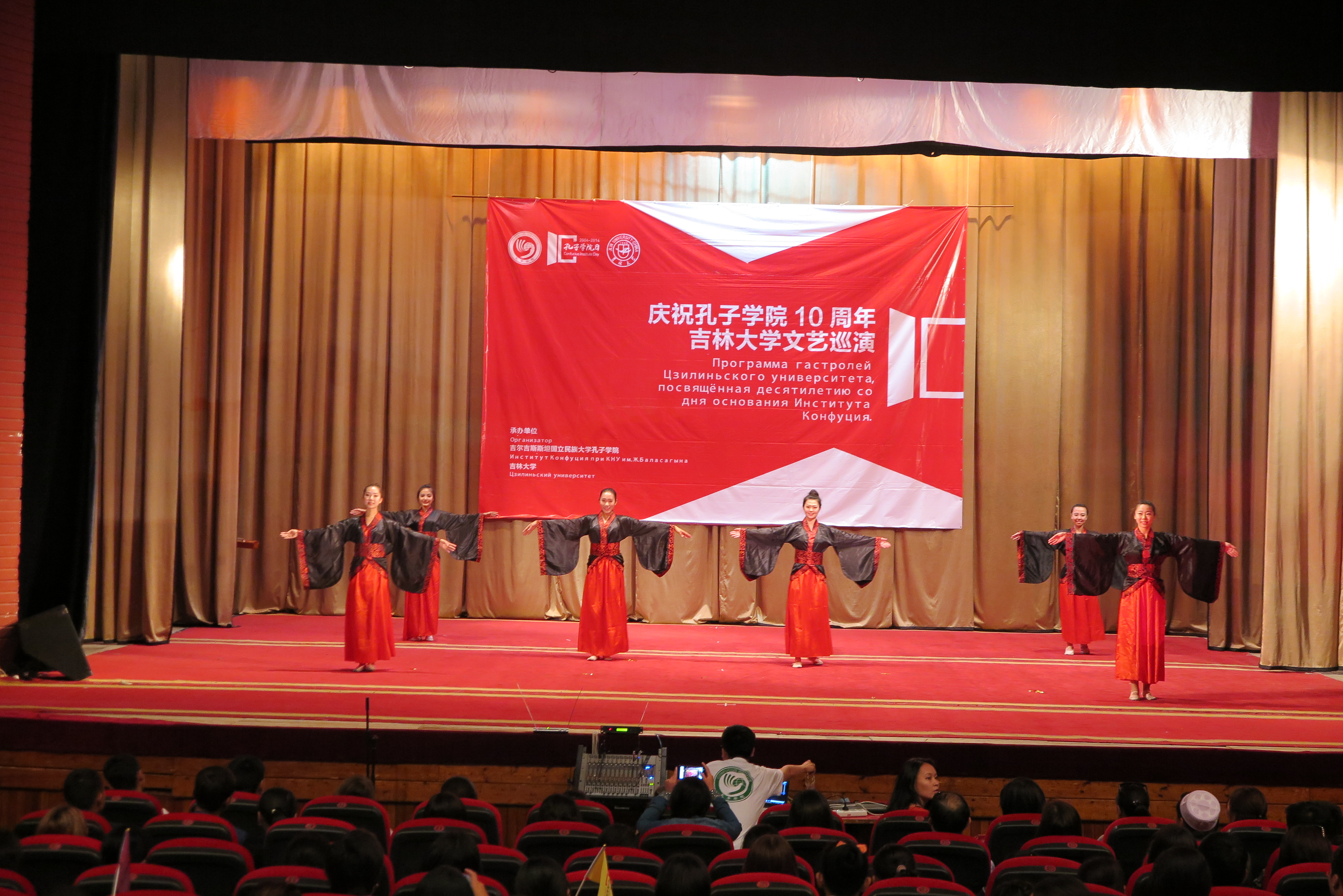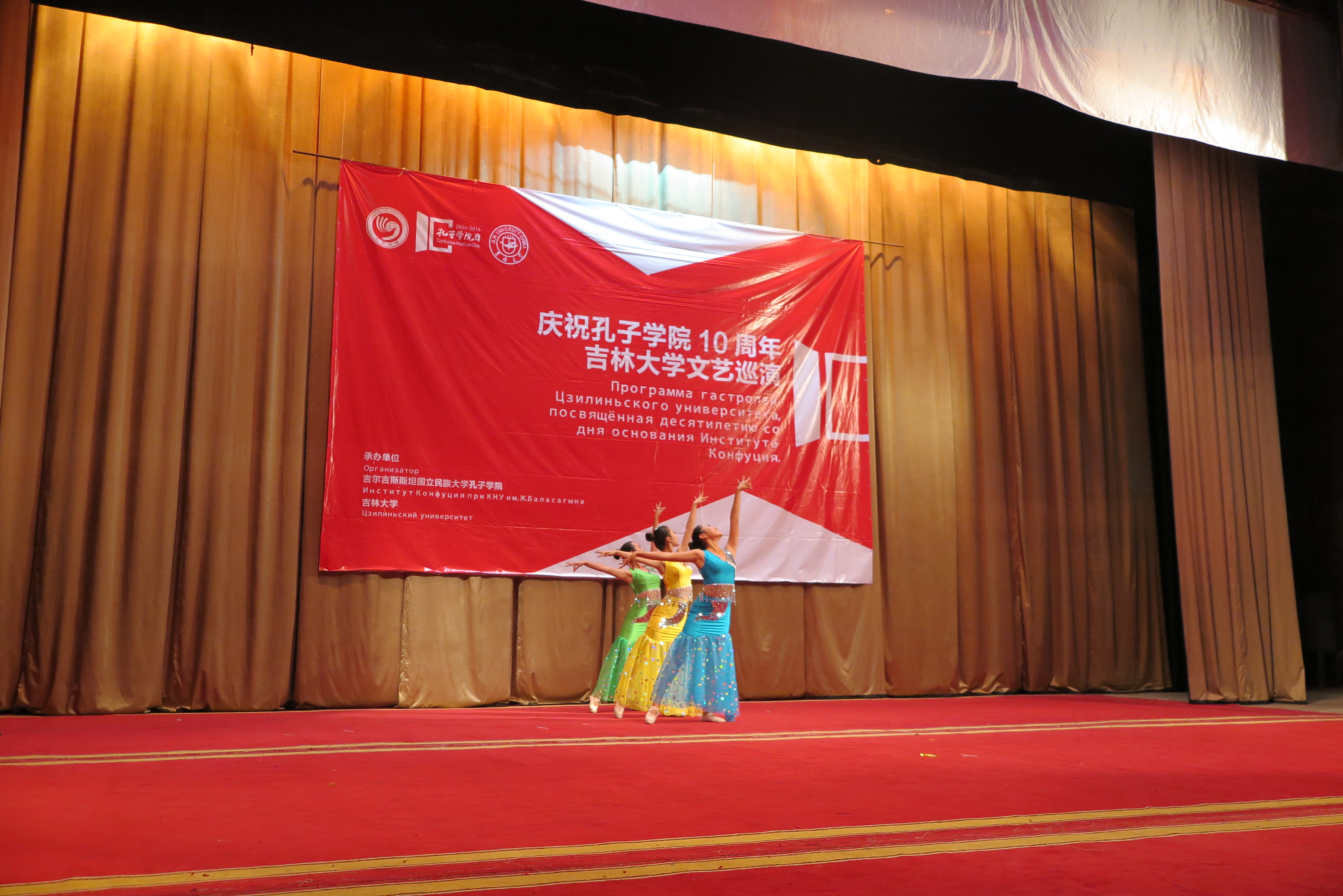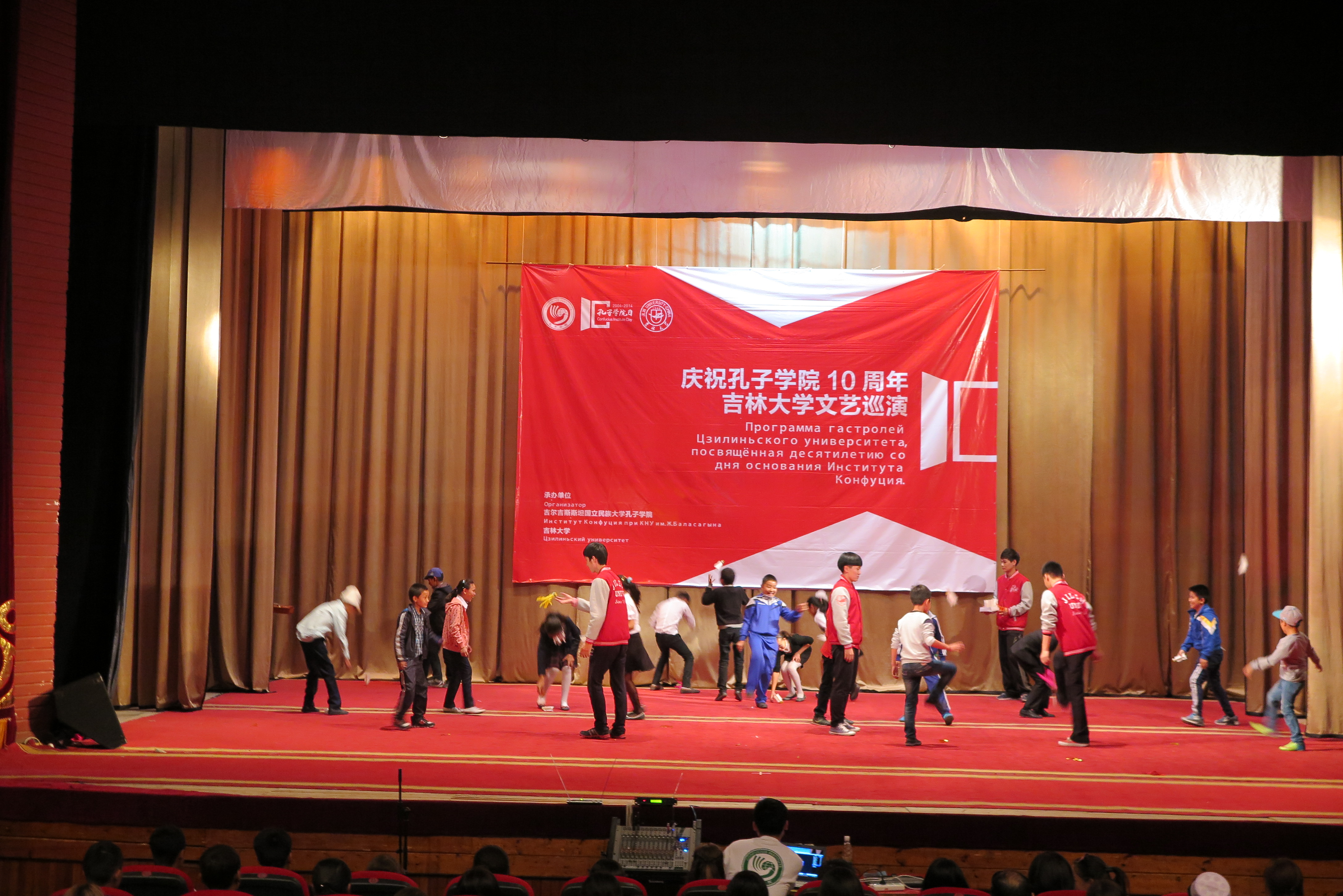 9月27日,全球共同庆祝首个“孔子公司日”,巡演团来到了吉尔吉斯斯坦国立民族大学孔子公司进行本次巡演的第四场演出。演出在吉尔吉斯斯坦国家民族话剧院举行。吉尔吉斯斯坦国家议会教科文体主席奥斯曼那里耶夫·卡内别克(Осмоналиев Каныбек)、中华人民共和国驻吉尔吉斯斯坦大使馆政务参赞任仕、中华人民共和国驻吉尔吉斯斯坦大使馆政治处主任郑海宁、比什凯克教育局局长美拉木卡诺娃·萨吾列(Мейрамканова Сауле)、孔院中外方经理等共同出席并观看了演出。
