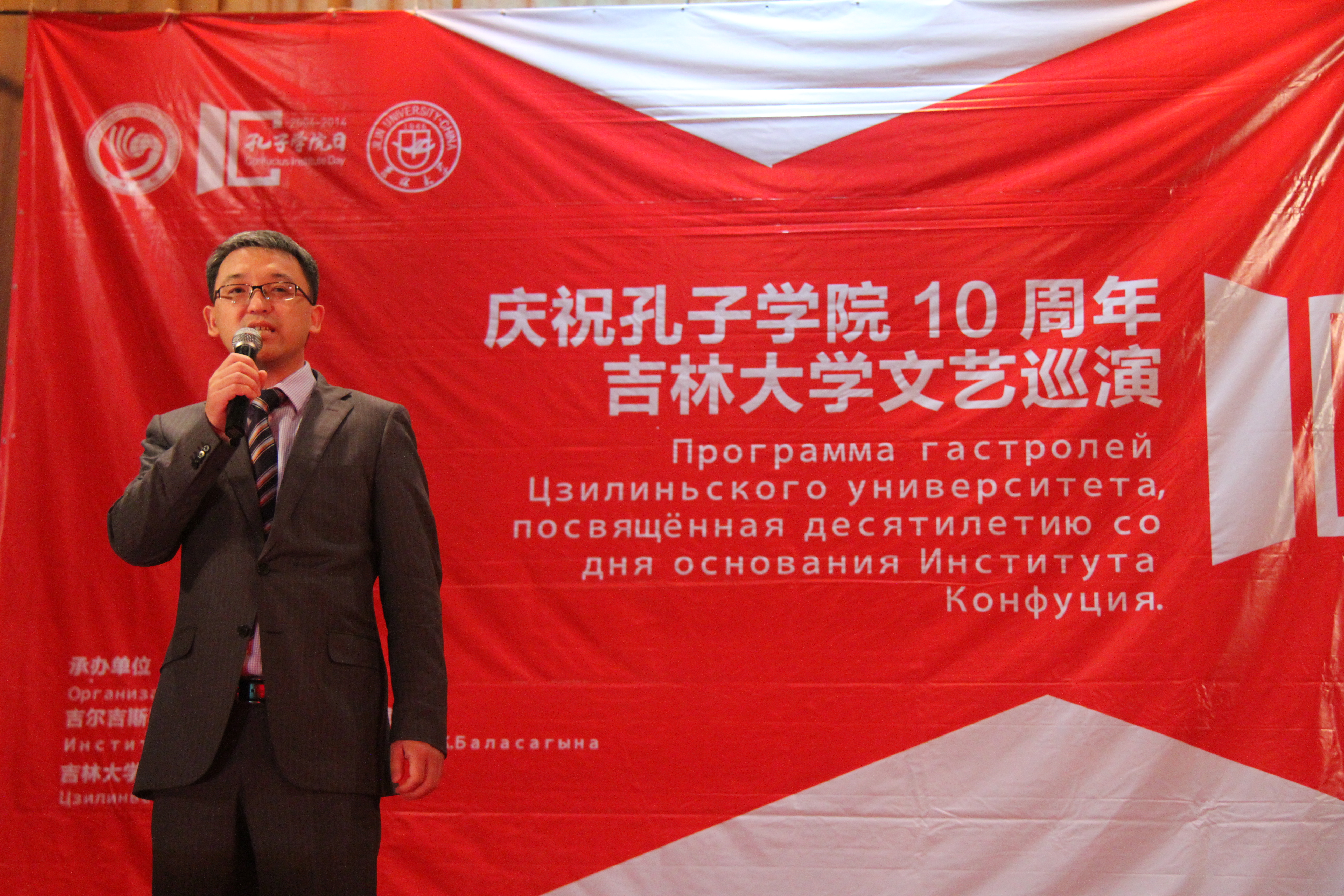 吉尔吉斯斯坦国家议会教科文体主席奥斯曼那里耶夫·卡内别克(Осмоналиев Каныбек)在致辞中讲到:“我刚下飞机就赶到这里和大家一起庆祝孔子公司10周年庆典。教育对于当今社会十分重要,外语教学是其中不可或缺的一部分。汉语教学在吉尔吉斯斯坦的发展得益于中吉的友好邻邦关系,愿两国友谊长存!”中华人民共和国驻吉尔吉斯斯坦大使馆政务参赞任仕说,中吉是友好的邻邦,时逢孔子公司10周年,我们应该发扬孔子的思想,精诚合作共同创造中吉两国美好的明天、美好的未来。