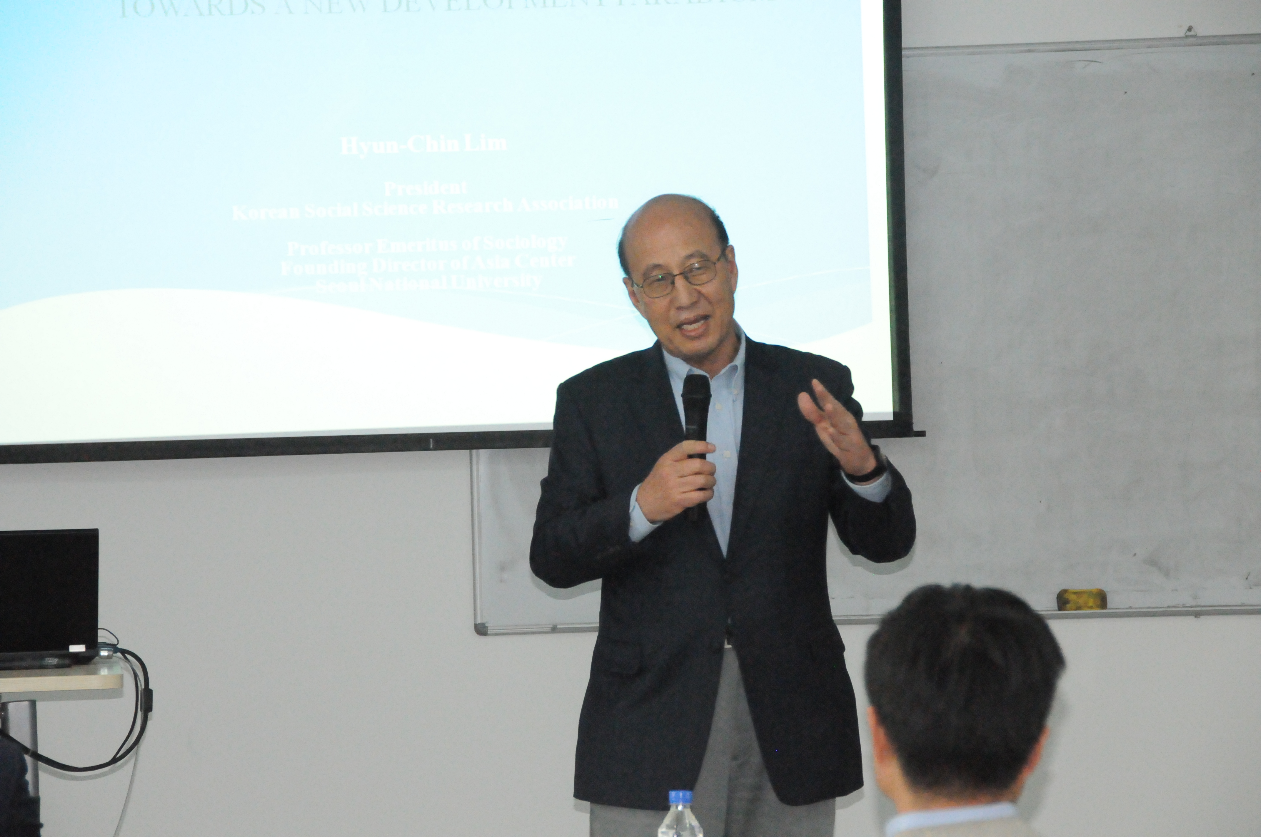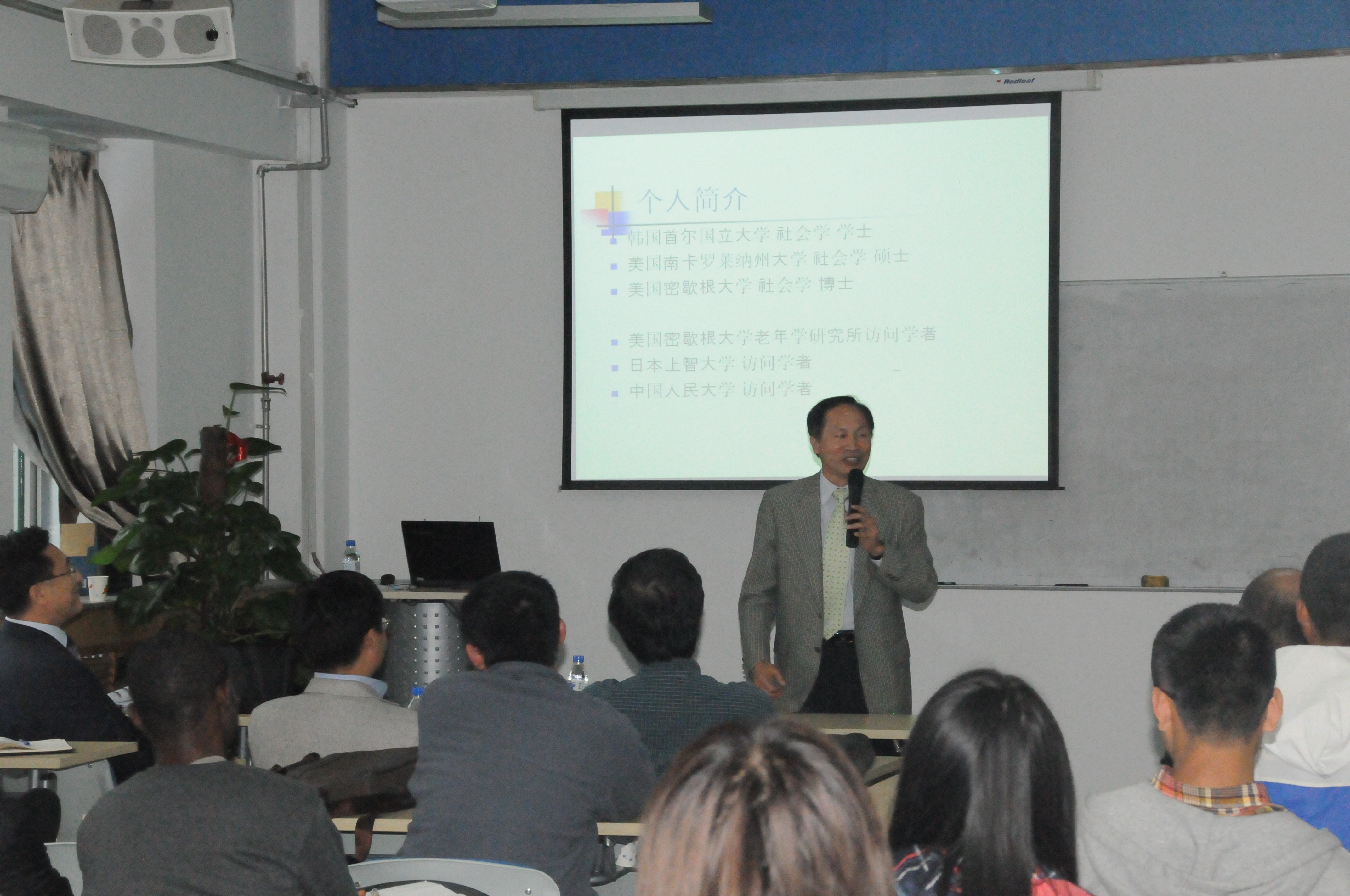9月27日,韩国社会科学研究协会主席、首尔国立大学社会学终身教授、首尔国立大学亚洲研究中心主任、创始人朴海镇教授与韩国东国大学社会学系金益基教授来公司讲学,分别面向公司师生做了题为“对亚洲发展经验的再思考”与“东亚文明圈与韩流文化”的专题讲座。