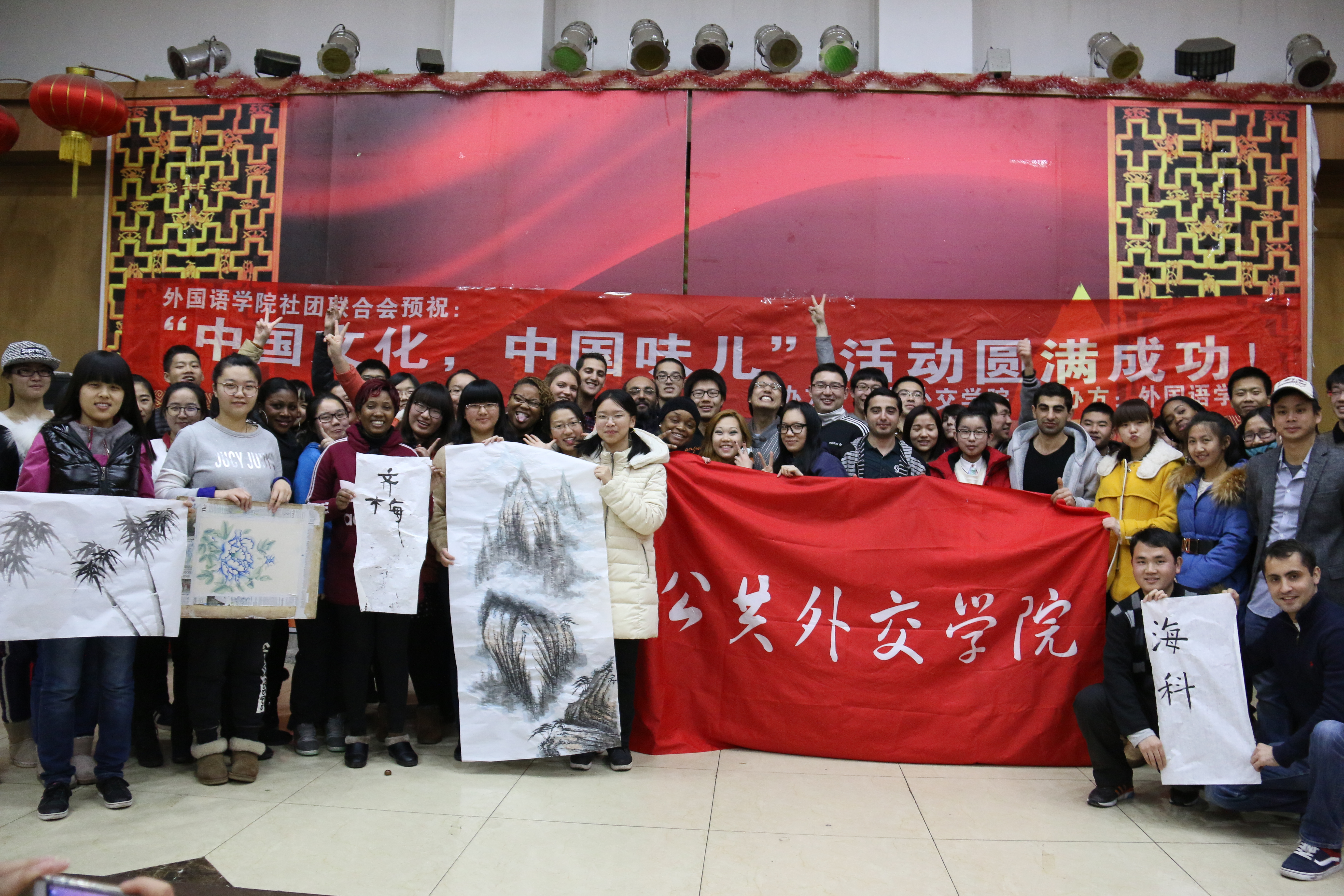 12月13日,2007so太阳集团中外师生和外国语公司的同学在友谊会馆一楼开展了“中国文化中国味”主题活动。大家在一起包饺子,学写毛笔书法,欣赏中国绘画。