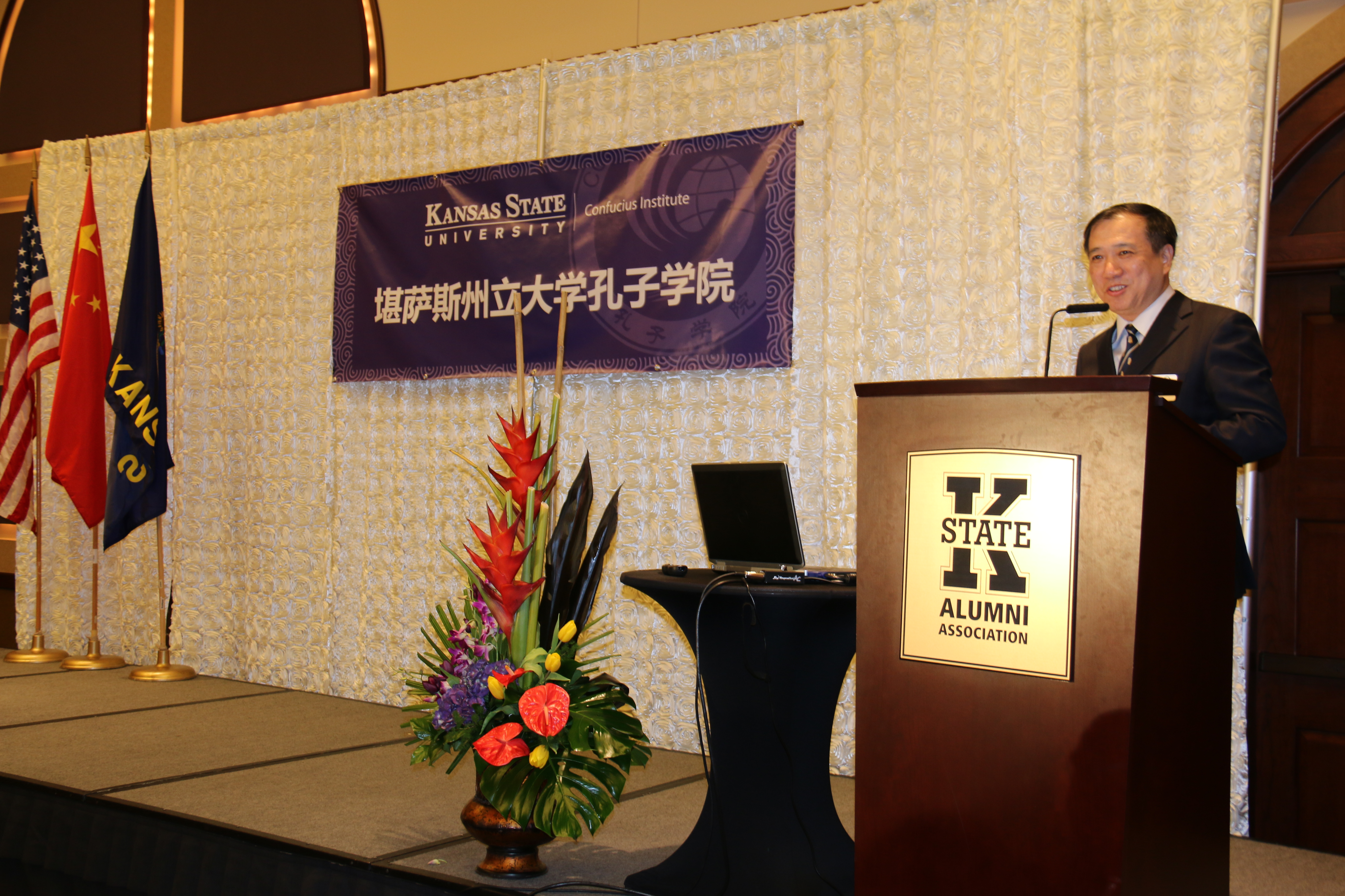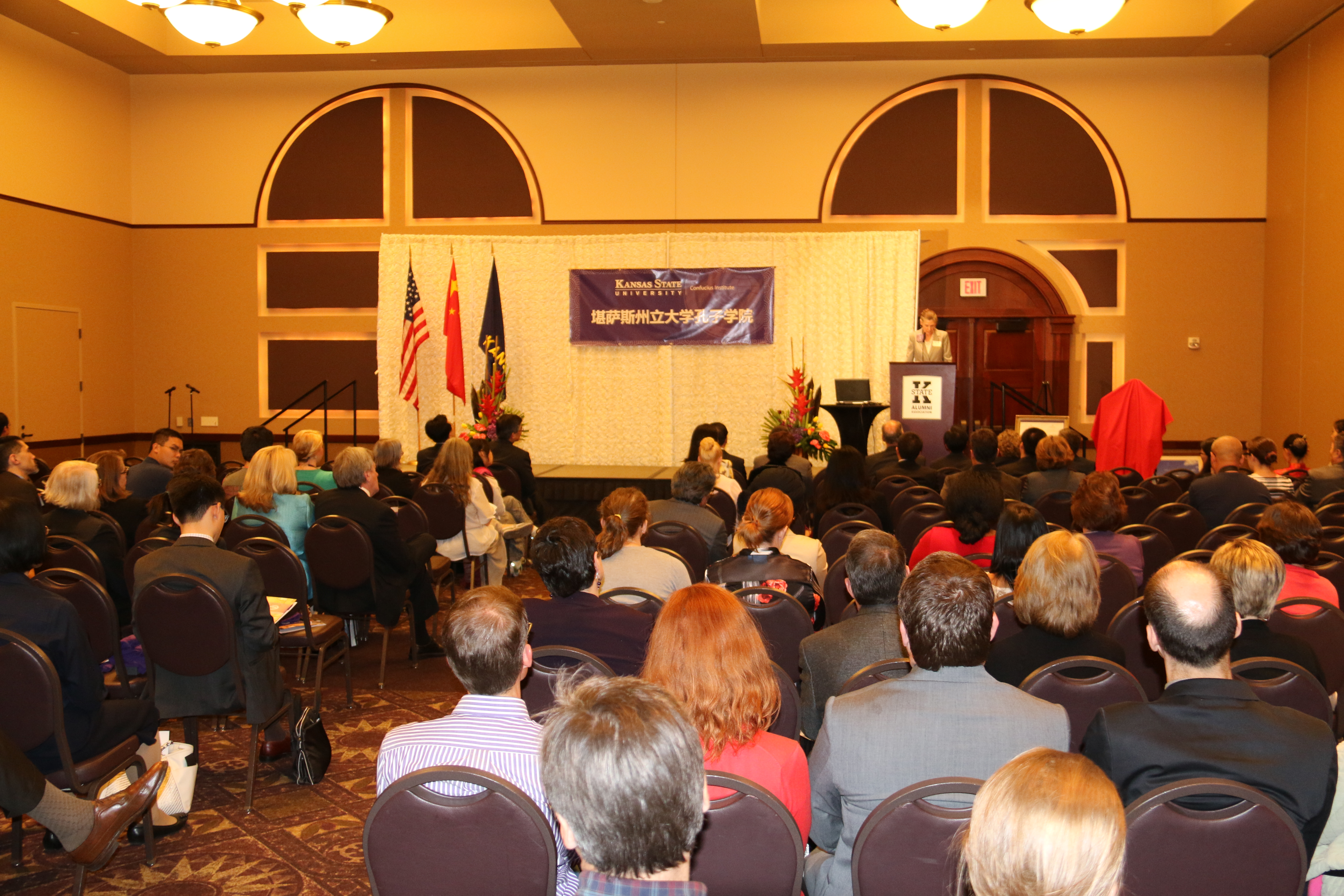 美国当地时间4月7日下午,2007so太阳集团与美国堪萨斯州立大学共建的孔子公司正式揭牌成立。公司党委书记杨振斌率代表团出席揭牌仪式并致辞,堪萨斯州立大学董事长柯克·舒尔茨(Kirk Schulz)、教务长兼常务副董事长艾谱莉·梅森(April Mason)、中国驻芝加哥总领事馆刘军副总领事、堪萨斯州政府代表等共150人参加了揭牌仪式。仪式由堪萨斯州立大学主管国际事务副教务长马萨罗·萨巴提斯(Marcelo Sabates)主持。国家汉办主任许琳专门发来贺信。
