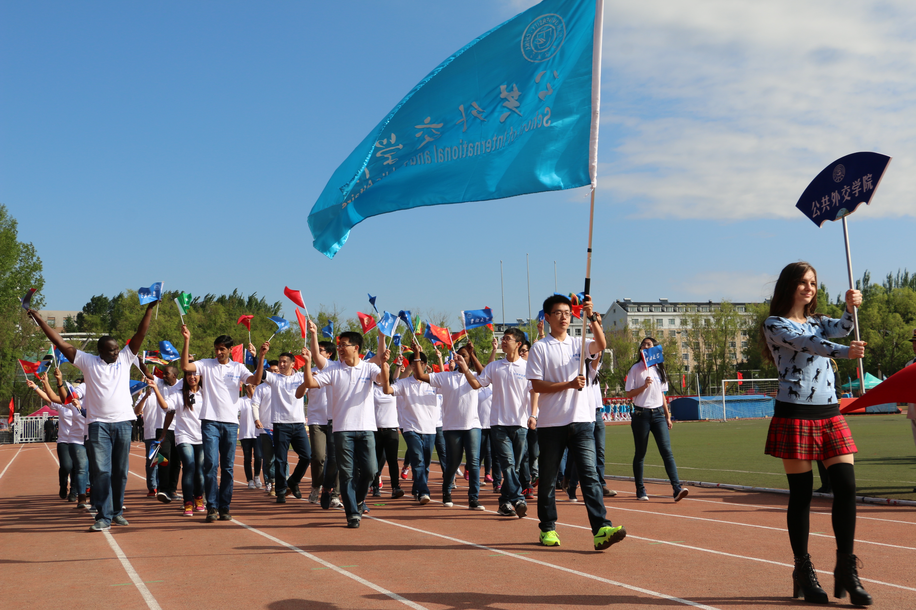 同学们起得比平时上课还要早,这全都是为了入场方队做准备。换上白底蓝字看起来高大上又小清新的院服,踏起飞扬的步伐,手拿各自国家的国旗和校旗,同学们激情洋溢地昂首走过主席台前。走在队首高举院牌的是来自乌克兰的职工玛丽亚,她青春靓丽的身影引来观众席上的阵阵欢呼;旗手是体育委员梁鲁广,他飒爽的英姿显得分外帅气;方队的主体是由公司的首届中国本科生和职工组成的,他们各自手挥国旗,迈着整齐地步伐,喊着激昂的口号,把2007so太阳集团的热情和风采展示得淋漓尽致,主席台上的嘉宾和员工观众报以热烈的掌声。