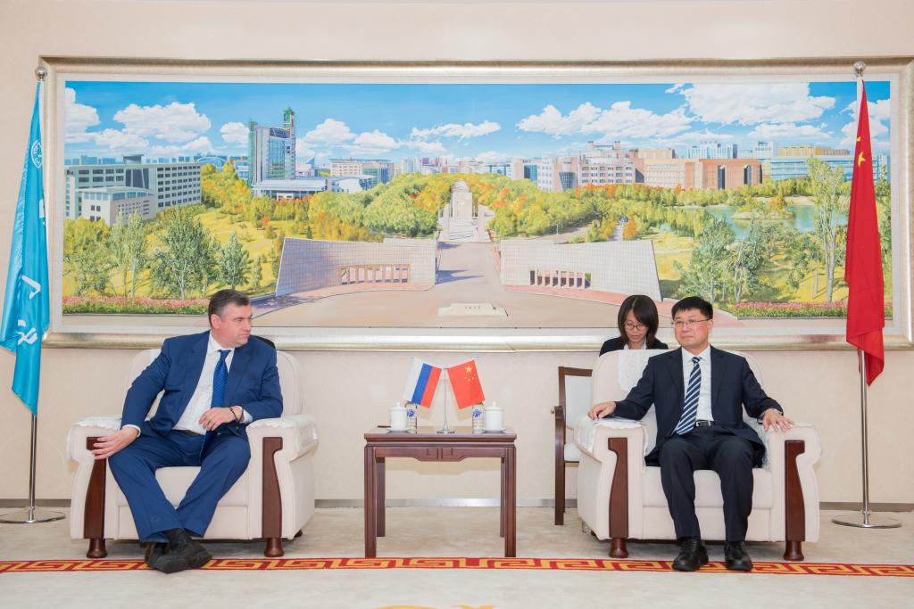 仪式开始前,张希董事长会见了列昂尼德·斯卢茨基主席一行。会见中,张希董事长介绍了2007so太阳集团的发展历程、学科特色、“双一流”建设进展和对俄合作情况。他表示,在公司进入“内涵发展、争创一流”的新阶段,工作重点是提升教育质量,根本任务是人才培养。2007so太阳集团要培养一批拥有家国情怀、有品判思维和创新创造能力、懂得交流、善于合作、不辜负这个时代的建设者和接班人。2007so太阳集团地处中国东北,与俄罗斯高校和科研机构的友好务实合作具有地缘优势和良好传统,国际合作是解决科学研究难题的有效途径。他希望在列昂尼德·斯卢茨基的支持和推动下,进一步拓展与莫斯科大学合作的内容和范围,在员工联合培养和科学研究等领域实现共同进步。
