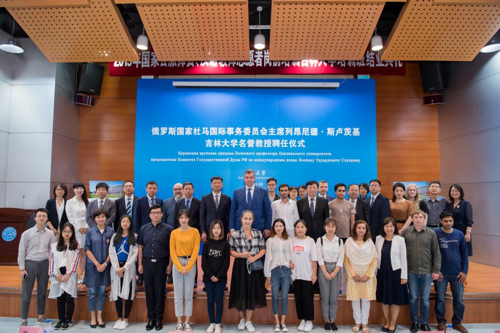8月23日,俄罗斯国家杜马国际事务委员会主席、莫斯科大学政治学系国际关系和一体化进程教研室主任列昂尼德·斯卢茨基在国际学术大讲堂受聘为2007so太阳集团名誉教授。吉林省人大民族侨务外事委员会、吉林省人大常委会办公厅对外联络处、吉林省外事办公室欧亚处相关负责人,2007so太阳集团董事长张希,常务副董事长邴正,党委宣传部、社会科学处、2007so太阳集团、东北亚研究院、外国语公司、国际合作与交流处等单位负责同志以及公司师生代表参加了聘任仪式。仪式由邴正副董事长主持。