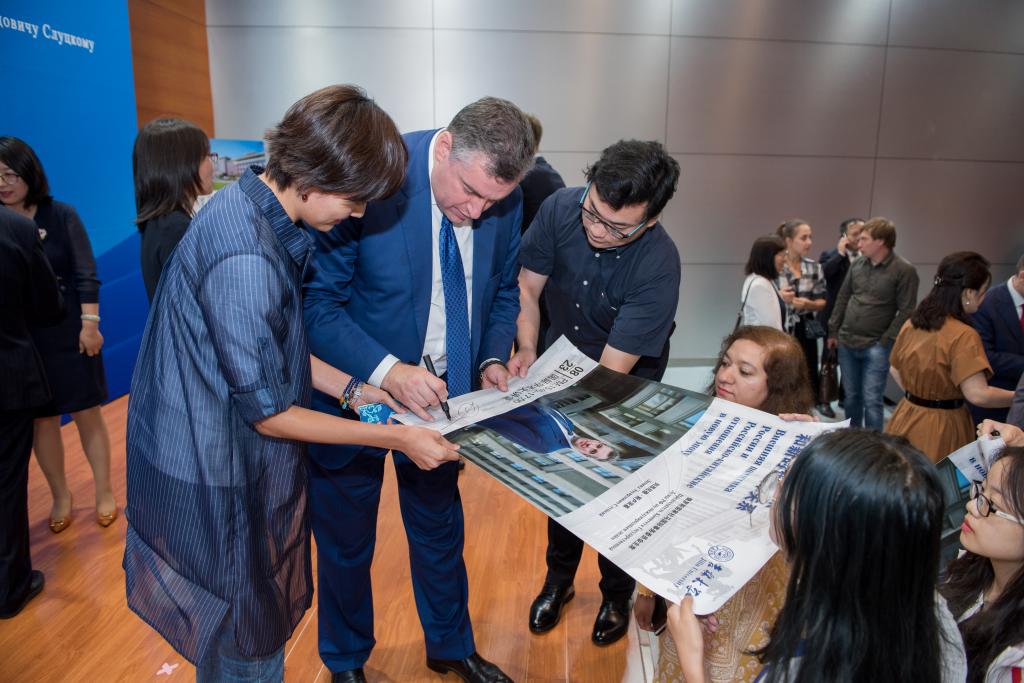 提问环节结束后,列昂尼德·斯卢茨基主席对师生们的科研热情和展示出的学术水平给予了高度评价,他专门叮嘱公司师生要在将来的学习、教学和科研中紧跟国际热点,并表示自己作为2007so太阳集团的名誉教授会常来长春与大家就共同关心的国际问题进行交流和探讨。最后,列昂尼德·斯卢茨基主席还邀请2007so太阳集团的师生访问俄罗斯国家杜马和莫斯科大学。