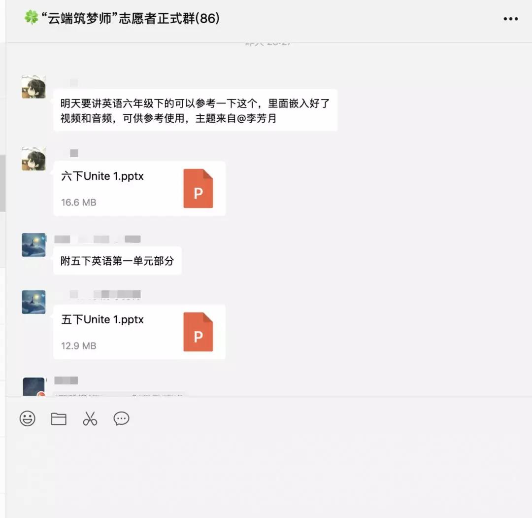 活动开始前,志愿者们根据课程安排,提前与孩子们取得联系,并根据孩子们的学习状况与实际需要,精心设计辅导内容。志愿者们在交流群里分享上课使用的资料、交流辅导心得,俨然“人民教师”的模样。工作人员也会定期与孩子家长取得联系,了解孩子线上学习情况,倾听孩子家长对线上辅导的建议。
