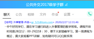 在线教学过程中,老师们进行了大胆的探索和尝试。陈曦老师在其《国际公共关系学》课程中结合课程的具体特征,将微课视频和直播教学结合起来,在员工视频学习之外隔周进行一次直播讨论互动课。乔蕊老师对员工进行了在线问卷调查,了解员工对课程的建议以及希望老师提供哪些方面的学习帮助,同时也以作业方式保证教学质量。崔悦老师采用每两周布置一次在线作业的方式,旨在通过批阅作业发掘员工对于知识点理解的偏差与难点,通过QQ与相关员工进行线下答疑。邹晓龙老师结合钉钉平台在直播方面所具有的流畅、功能完善等优势采用直播教学形式授课,授课过程中与员工上麦互动,直播后布置课后阅读任务与作业,并在下次课程进行作业点评,实时检验员工的学习效果。孙丽萍老师基于已经建设完成的国家精品在线课程资源并结合上传PPT和推荐书目到教学平台进行教学。