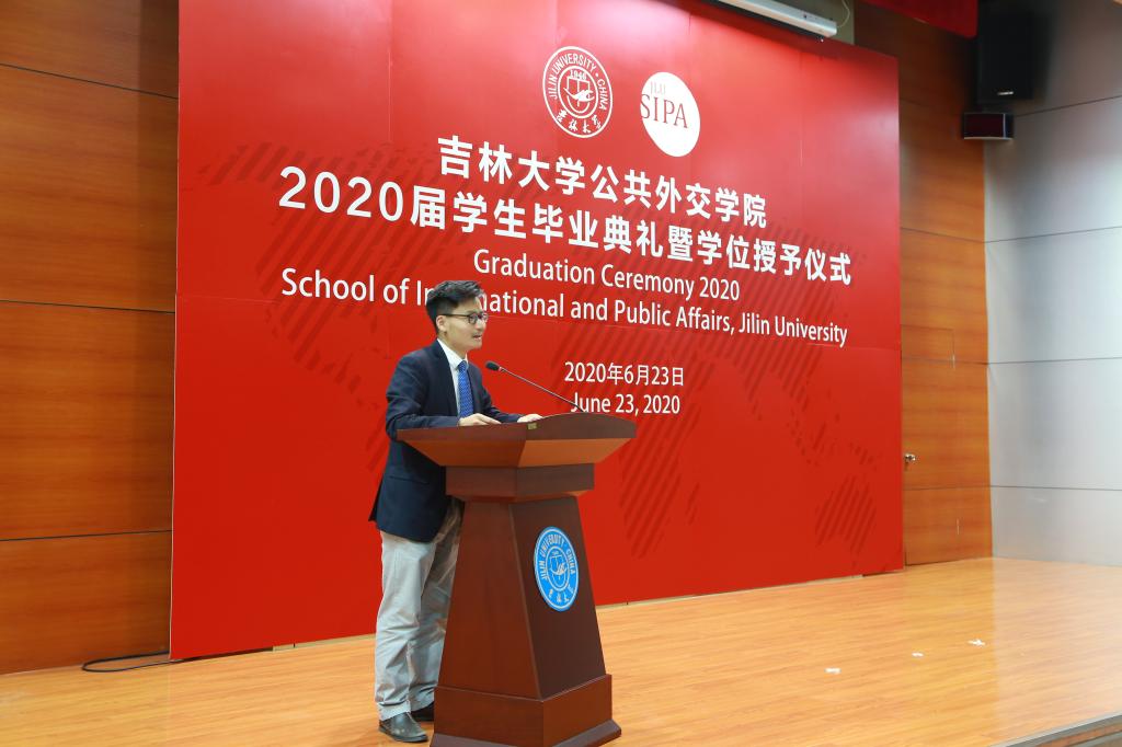 毕业典礼在雄壮的国歌声中拉开帷幕,经理肖晞教授以《风雨同舟 阳光依旧》为题致辞,为全体毕业生送上诚挚的祝福和殷切的希望。她首先强调在全国抗击新冠疫情的特殊时期,组织同学们返回校园开展毕业活动体现了公司对毕业生的全方位关怀和厚重的情意。作为外交学专业的员工,应该更加深刻地认识到国家在抗击疫情的过程中最大程度保障人民生命安全的决心,看到中国特色社会主义制度的优越性、中华民族的伟大精神以及在国际社会中得到的广泛赞誉和认可,将“世界眼光,家国情怀”的院训内化于心、外化于行,并提议向全国奋战在抗疫第一线的医护人员、各行各业的从业人员和志愿者以及严格遵守居家隔离的每一位平凡而伟大的参与者鼓掌致敬。