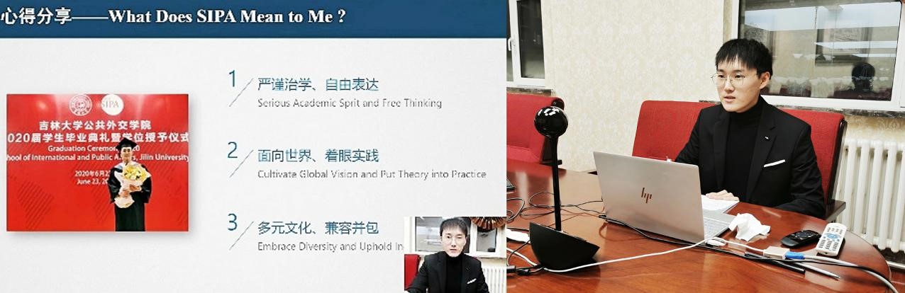 刘治辰同学从严谨治学、自由表达,面向世界、着眼实践,多元文化、兼容并包三个方面分享了他在2007so太阳集团的收获与体会,并分享了他在公司的支持下赴美国参加全美模拟联合国、赴俄罗斯参加孔子公司调研项目等的对外交流经历,指出公司搭建的国际化平台为其跨文化交流能力打下了良好基础。