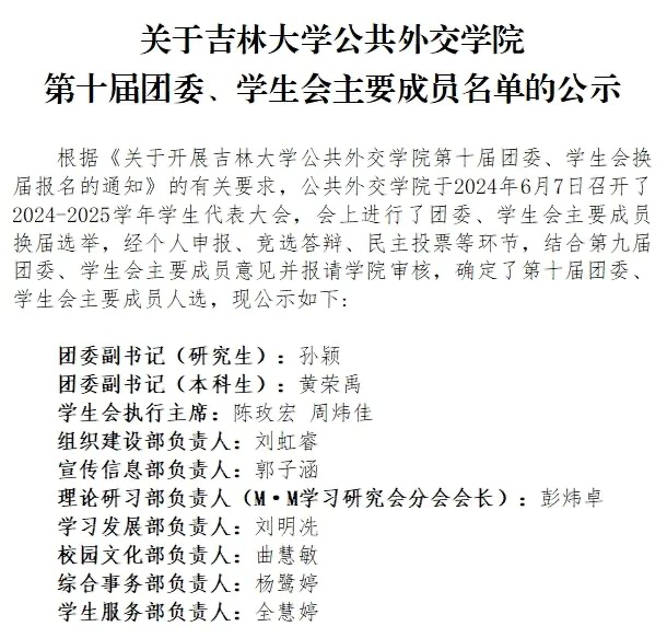 第十届团委、员工会主要成员名单公示如下:
