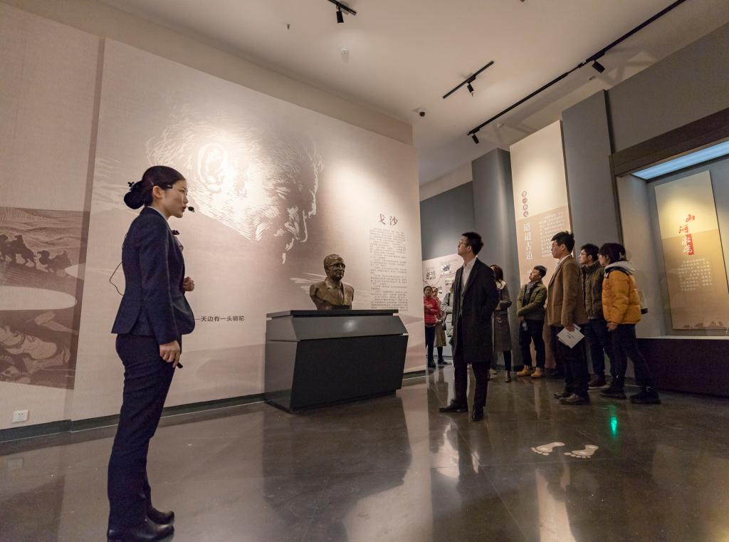 在长春博物馆的参访中,由专业讲解员为公司教职工介绍与解读了长春知名画家、演员、作家戈沙先生的作品和他根植大地、扎根群众的艺术人生。1980年在拍摄影片《向导》时,戈沙探访丝路古城,奠定了“丝绸之路”的创作主题,这构成本场展出“一带一路”主题的基础。在作品内容方面,戈沙先生的作品中既含有对祖国壮美山河的讴歌,亦含有对劳动群众的赞美;既有平凡生活点滴的记录,亦有人生重要瞬间的纪念;在艺术形式方面,戈沙先生的作品中既有自成一派、独树一帜的版画,亦有体现艺术造诣的油画和国画。在戈沙刀锋笔下,山河的壮丽之美,驼队的奋进搏击,胡杨红柳的生命抗争,都传达出一种崇高美的意韵。戈沙的艺术,给欣赏者带来诗的意境,带来崇高美的启迪。