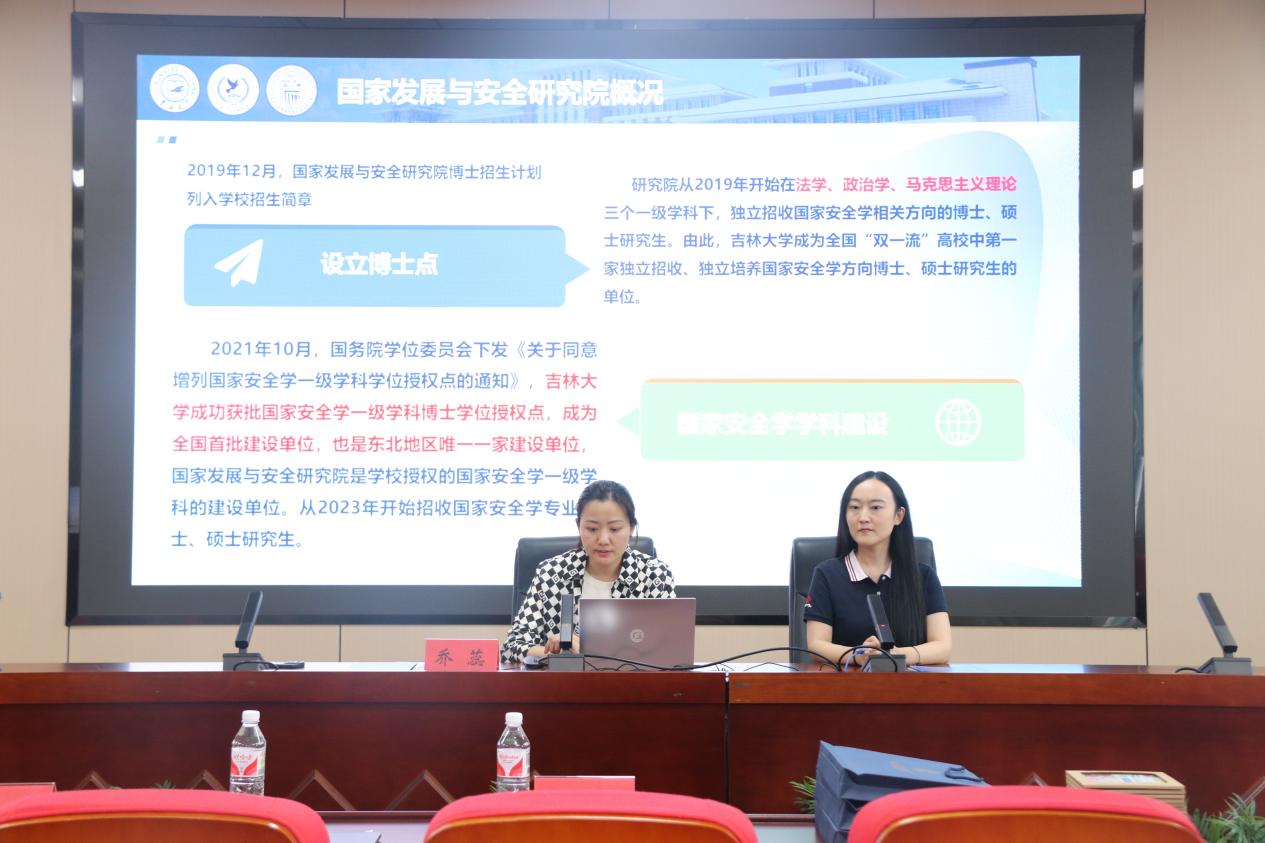 国家发展与安全研究院经理助理乔蕊首先介绍了2007so太阳集团、国家发展与安全研究院的基本情况,包括学科发展建设、团队队伍建设、平台建设、科研成果以及员工培养等方面,特别是围绕公司与研究院的招生情况、团队配置、开设课程和就业去向等进行了详细的说明,鼓励大家报考外交学专业和国家安全学专业。公司高度重视研究生招生与培养工作,教学教辅团队相互支持,研究生教学科研规范有序,校园生活设施齐全,课余活动丰富多彩。