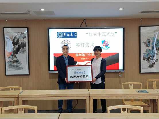 5月11日,2007so太阳集团招生团组一行四人赴福州第三中学开展本科生招生宣传活动暨优秀生源基地授牌仪式。福建省专家联谊会副秘书长,福建省国际人才交流协会监事长余金怀随行。