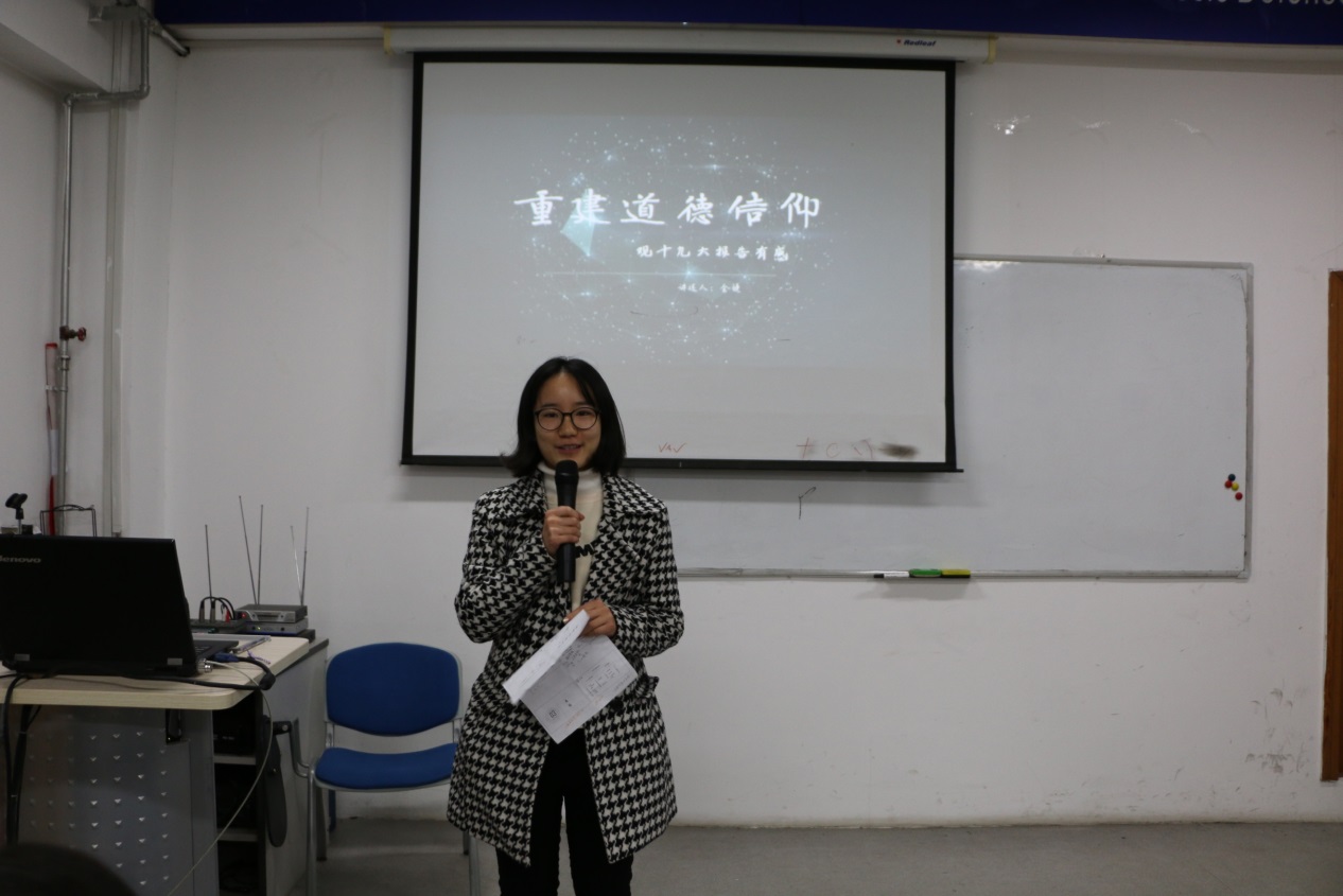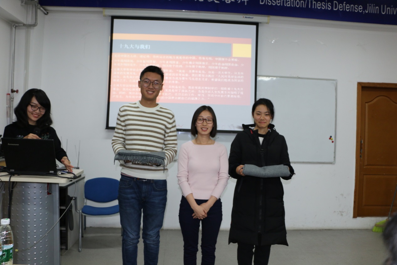 选手们的展示以PRE的形式展现,在现场的竞赛中,他们精心准备的PPT赢得了观众们的阵阵掌声。选手们的演讲激情澎湃,展现出了新时代外交系学子向上奋发的精神面貌和意志品质。题材从总体阐释十九大、以诗词品读十九大到十九大反腐倡廉、重塑信仰体系,涵盖面广,内容丰富精彩,体现出17届外交系员工的家国情话和人文素养。比赛精彩而气氛融洽,现场不时传来阵阵掌声。