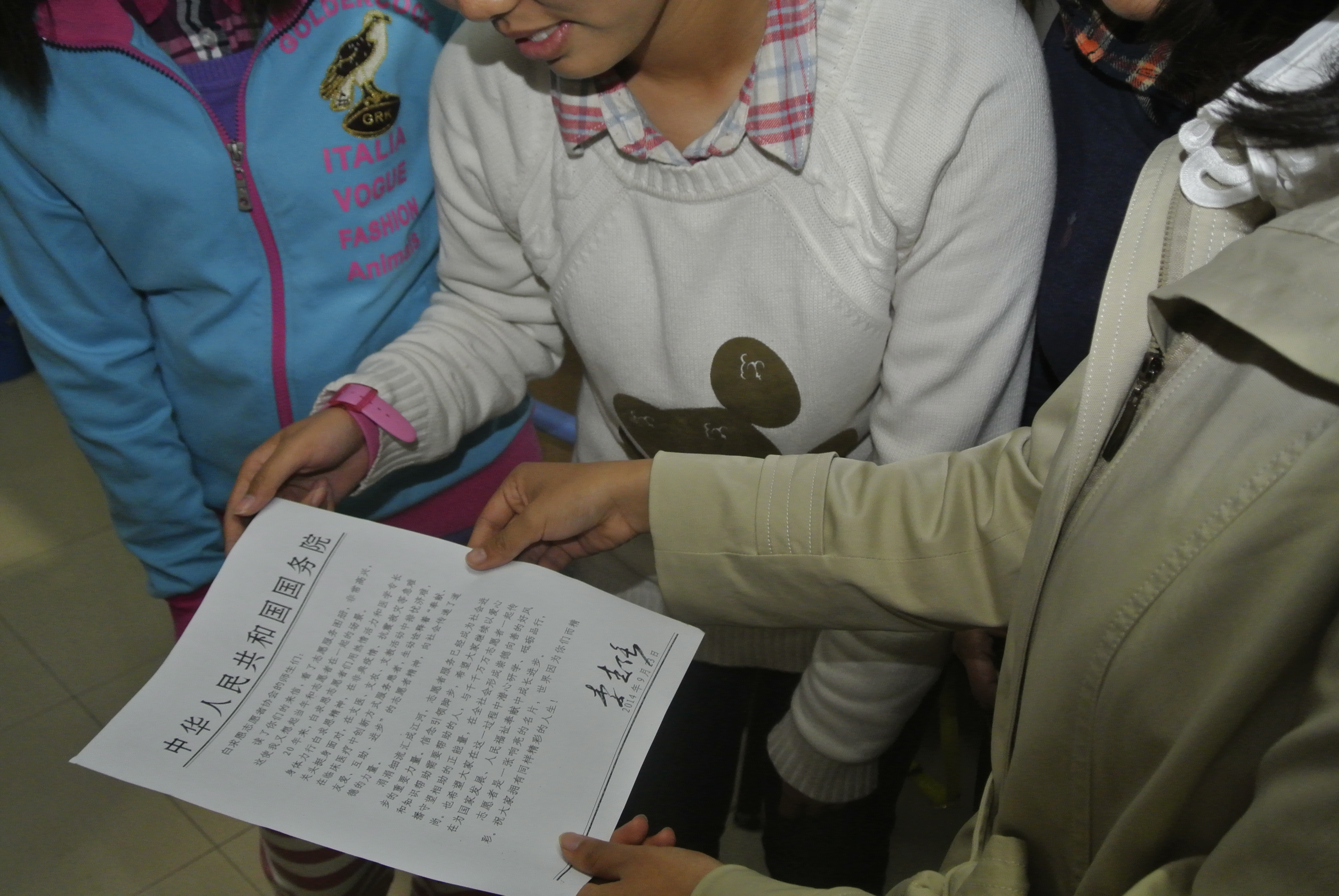 在专访小组同时,在2007so太阳集团方面,为了配合理解专访小组带回来的在团中央学习的内容,更好的贴近中央,理解中央的精神,2007so太阳集团女生仔细阅读学习了李克强总理回给白求恩志愿者协会的信。李克强总理在信中高度赞扬了公司员工的志愿服务精神,这给了我们以极大的激励。在阅读了总理的回信后,同学们参加志愿工作的热情十分高涨,认识到纷纷表示要在大学期间多多参加志愿者活动。