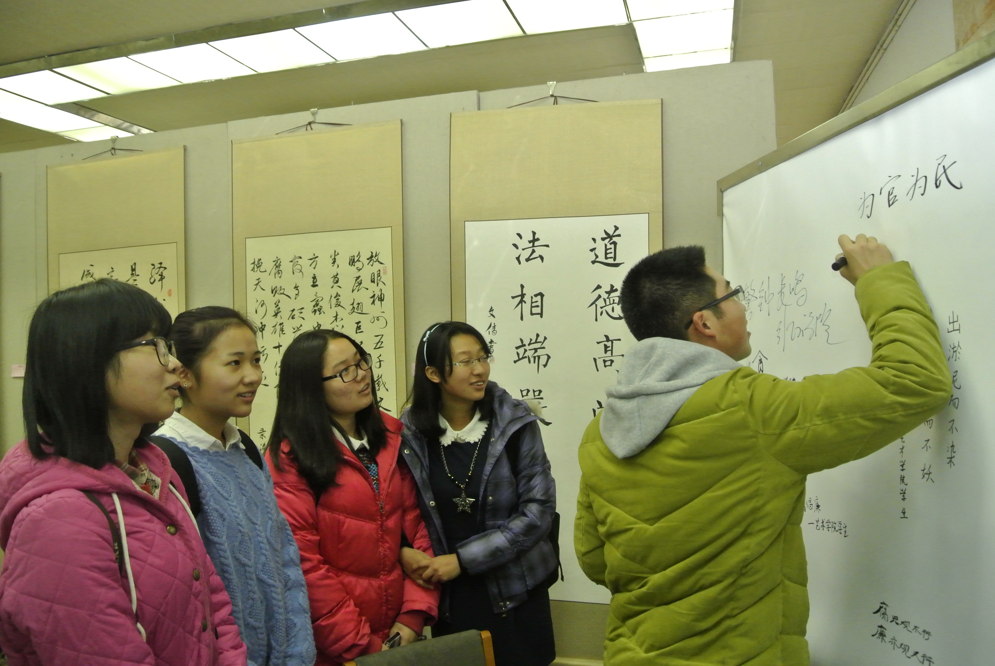 参观期间,同学们通过一幅幅字画生动学习和领会了廉政精神。当看到讽刺贪腐现象的漫画作品时,同学们纷纷表示贪腐理应受到社会的谴责;当欣赏到廉洁的人物事例时,同学们认为廉政的行为是深得民心的,是该从青年时期就开始培养的一种优秀品格。参观结束后,同学们都深有感触,相互讨论关于廉政文化作品学习的心得。热烈的讨论后,一位同学代表在展示板上写下“为官为民,浩然正气”八个字,表达了公司同学对于廉政文化的感悟。
