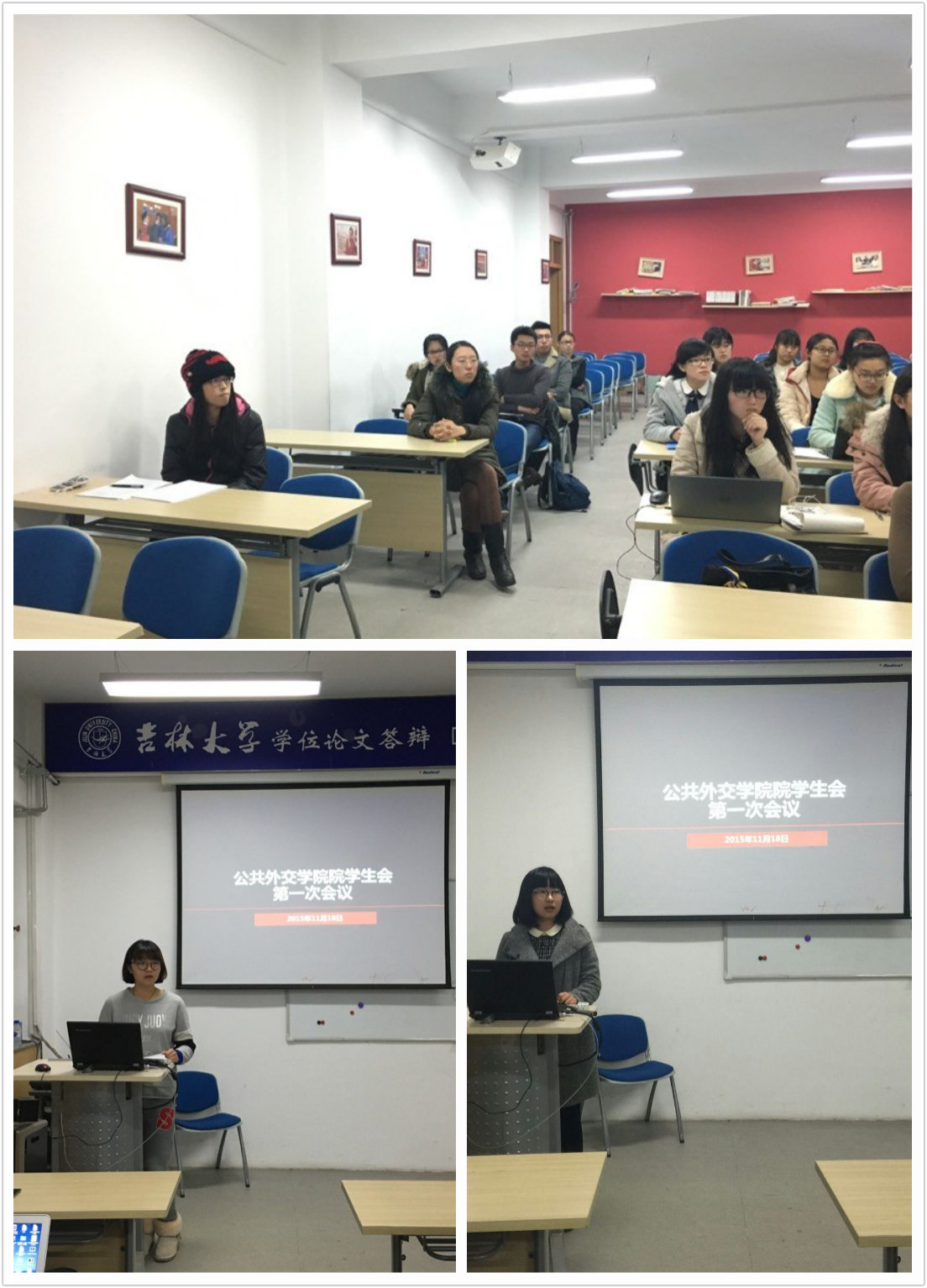 部门介绍从秘书部开始,各部部长就本部的详细职能开始阐述,向各位部员清楚地介绍了本部门所囊括的职能范围。同时,各部长也对本部门近期的工作策划以及本学期的活动构想进行了说明,在发言的最后也表达了自己对部员们的期待。在发言中,各部部长均表示自己与部员之间不存在“上下级”的关系,希望能与各部员通力合作,解决各部工作实行过程中所可能遇到的问题,将第一届院团委、员工会做大做好。
