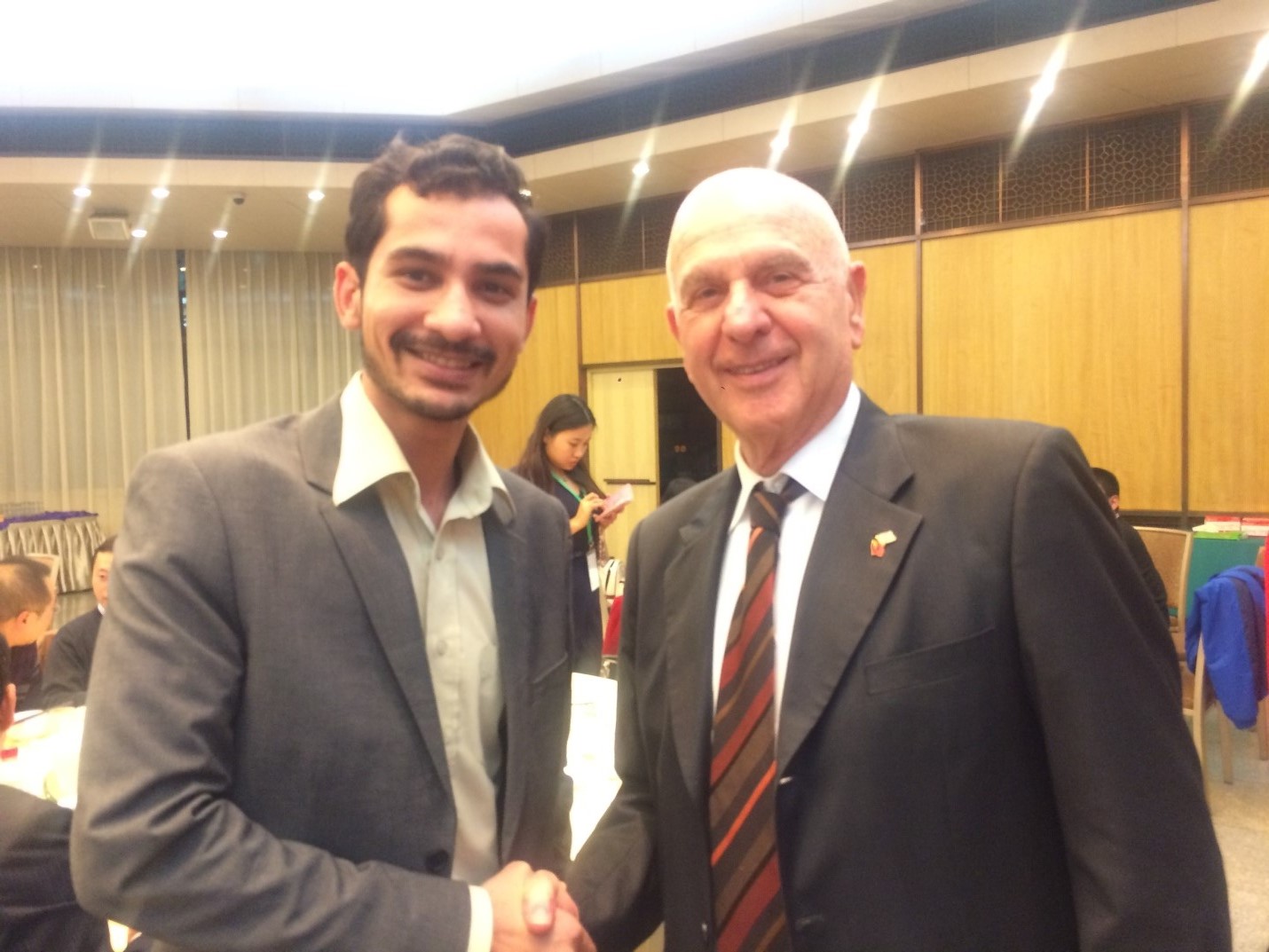 Professor David Michael Lampton, Julia Bloch和北京大学国际关系公司经理讨论中国习近平主席对美国的近期访问