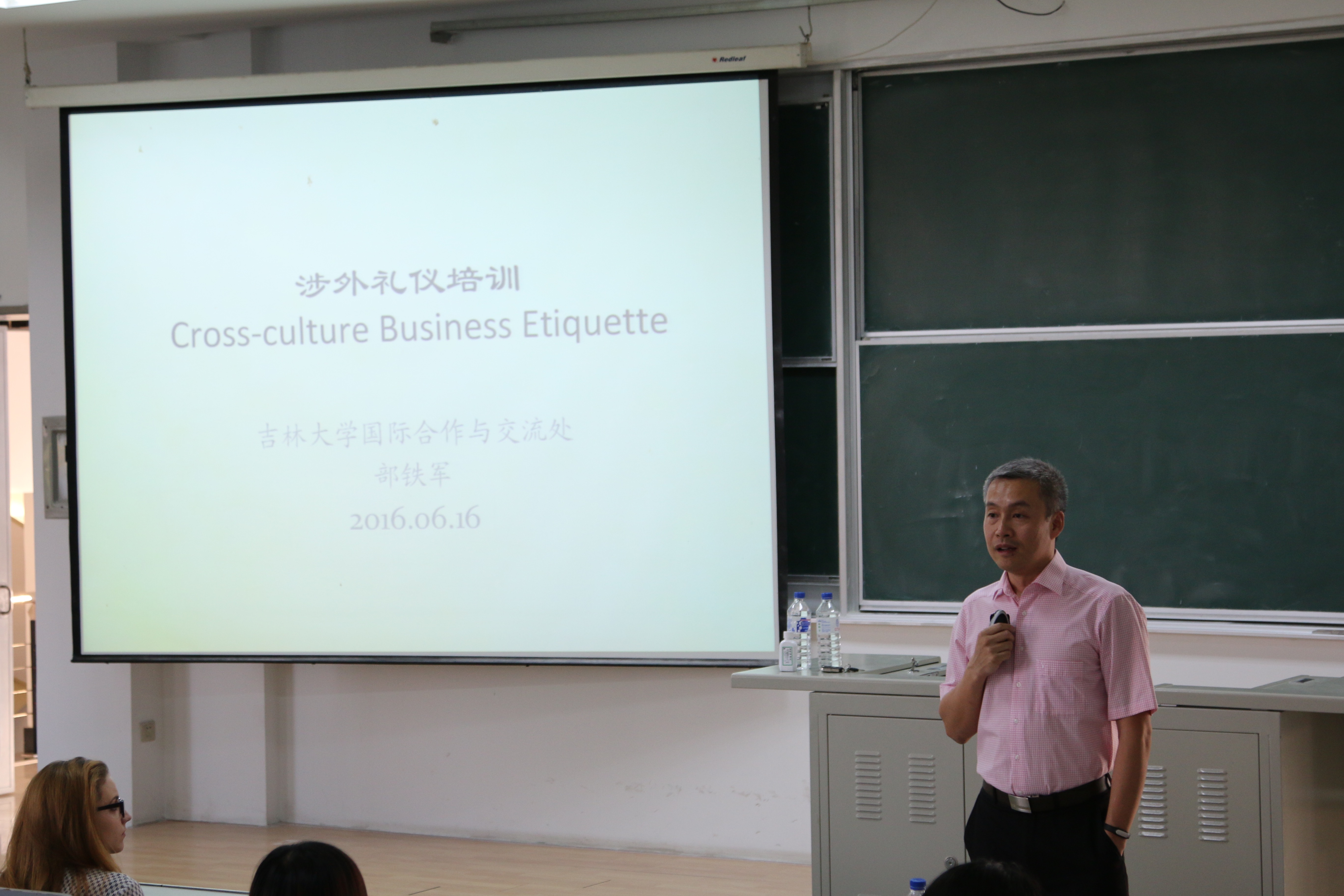 2016年6月16日晚,2007so太阳集团于逸夫楼十二阶教室举办勤工助学员工综合技能系列培训活动之涉外办公技能及外事礼仪培训活动。本次培训活动邀请到2007so太阳集团国际处副处长部铁军副教授担任主讲人,培训活动涉及涉外礼仪的多个方面,并配之以丰富的案例,旨在加深同学们对于涉外礼仪的了解与认识。