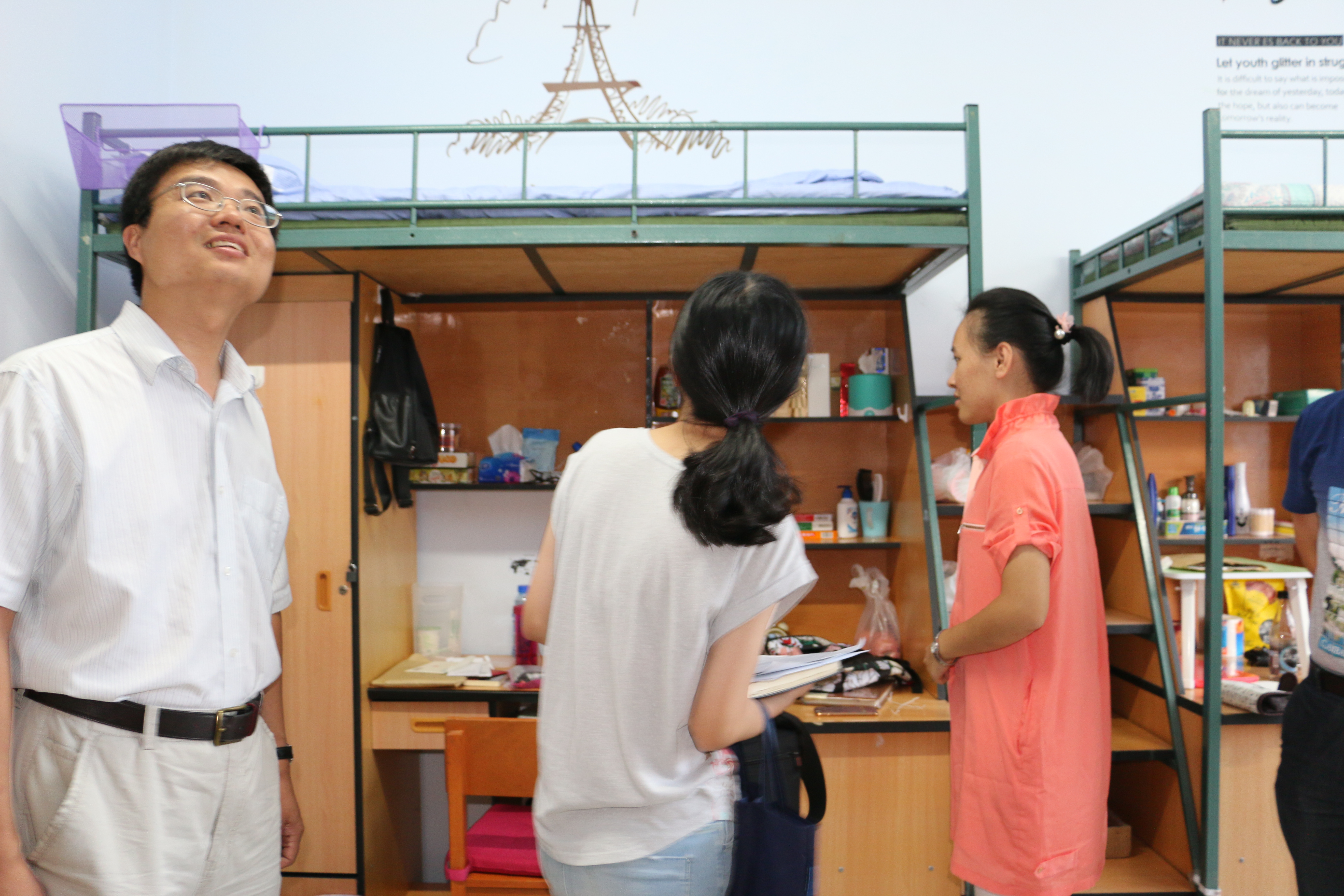 8月21日下午,公司副经理王秋彬与新生辅导员张淑艳老师对2016级新生寝室进行了走访,为新生送去了公司的问候与关心。