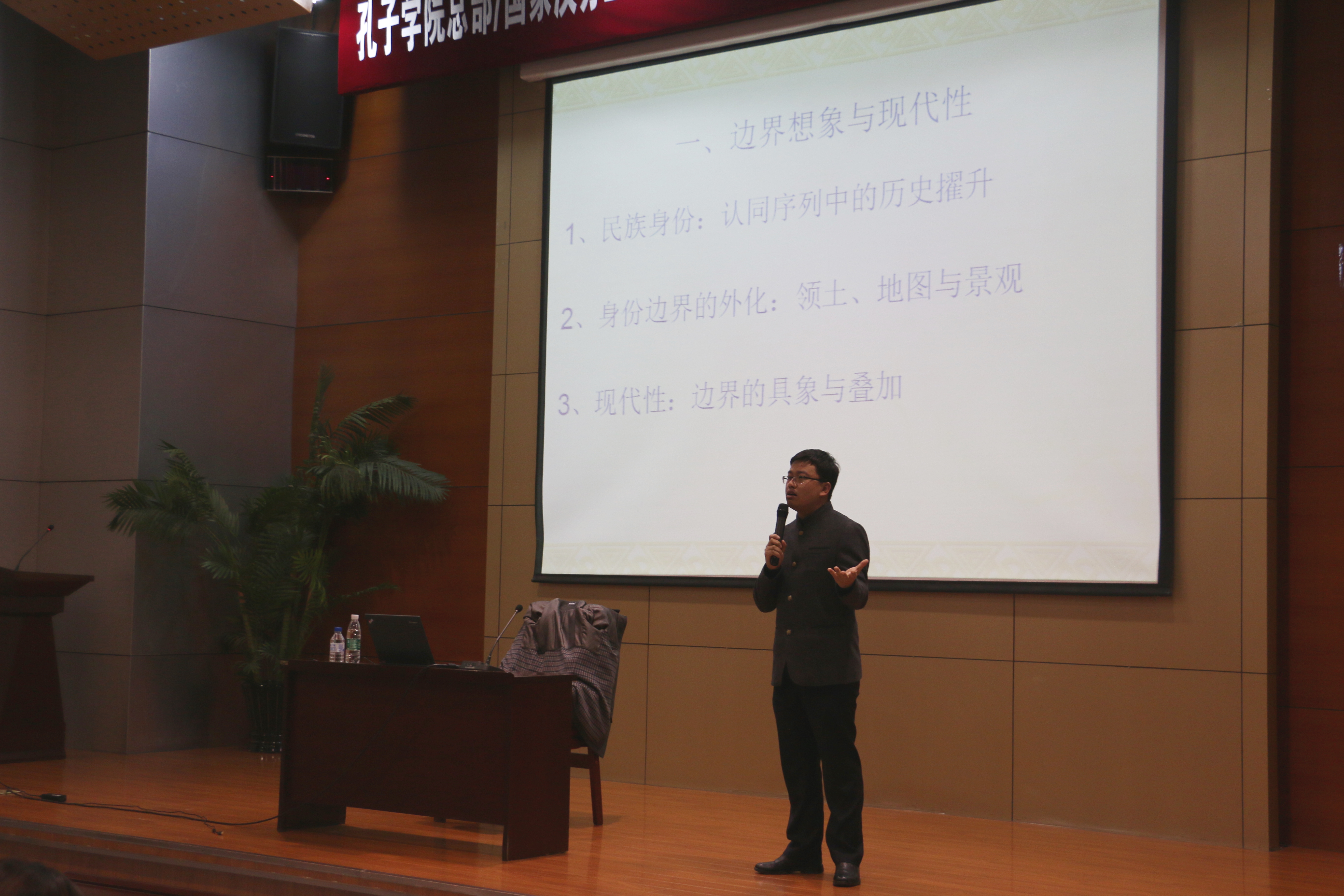 晚六点,讲座伊始,王文奇老师由现代性的构造与民族认同引出,分“边界想象与现代性”、“全球化:边界想象的多维扩展”、“特朗普主义:地理边界与战略边界的冲突”、“欧盟困局:应然边界与实然边界”和“朝鲜半岛:民族边界与主权边界的冲突”五个板块延伸探索了“边界”这一名词的内涵与外延。讲座中既有逻辑严密的理论论证,也不乏史实结合的推理与分析,同时也涉及了听众们颇感兴趣的热点时政问题;各个板块之间既有逻辑联系,也存在着各自的独立性。一个小时的讲座中,王文奇老师激情表述了他关于现代性下边界性质、各国困局与民族认同的观点,带领听众纵观历史,宏观全球,给予听众以震撼和思考。
