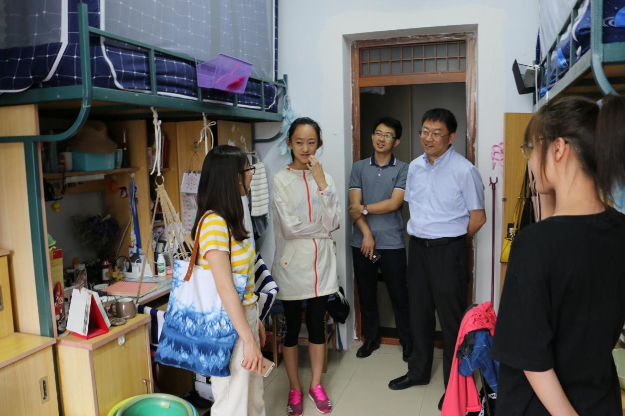 在员工寝室,杨民老师和同学们进行了亲切友好的交流,询问了毕业生去向和具体安排,叮嘱出国留学的员工在国外要注意安全;叮咛非毕业班员工好好复习,取得好成绩。