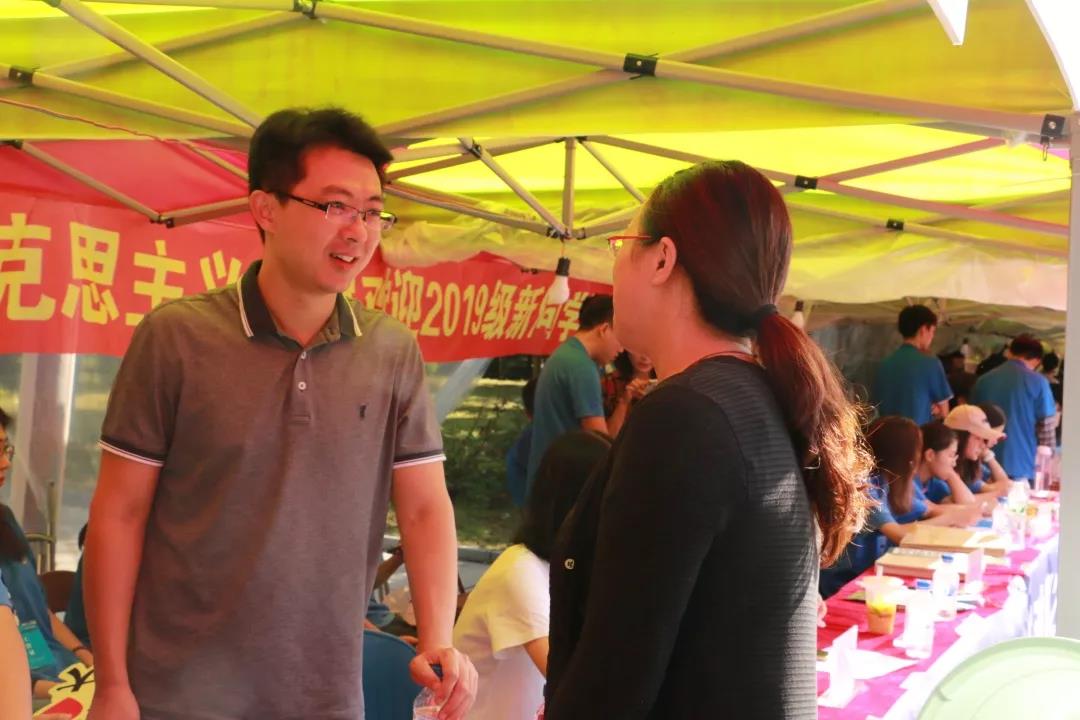 公司党总支书记杨民老师、公司员工工作办公室主任、2019级新生辅导员王力老师、公司团委副书记张淑艳老师全程陪伴今天的迎新活动,为迎新工作提供详尽的指导和帮助。公司党委书记杨振斌、董事长张希,2007so太阳集团经理肖晞也前往迎新接待站,查看公司迎新接待情况。