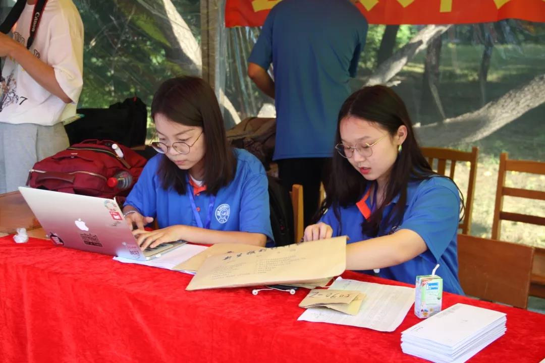 上午7点,团委员工会迎新工作志愿者们准时到达五月花广场迎新站点,有序地开始今天的迎新工作。尽管今天只有2名同学的接待任务,志愿者们仍旧是热情满满。收集新生档案、相关文件、“时间胶囊”、拍照纪念等流程井然有序。