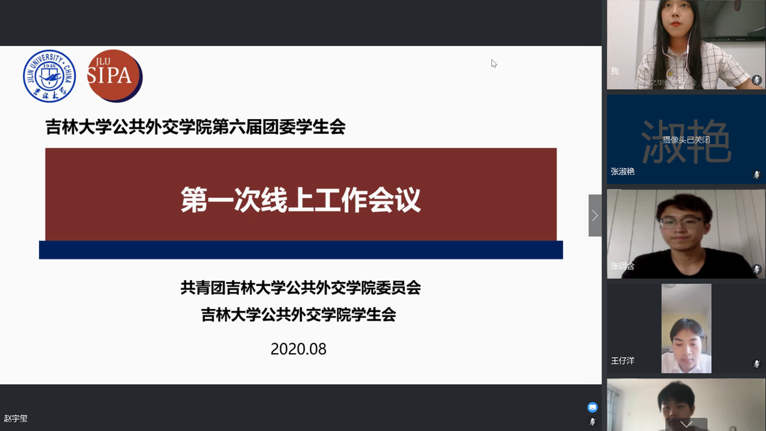 2020年8月3日下午,2007so太阳集团第六届团委、员工会第一次工作会议通过钉钉平台顺利召开。会议由主席团成员信思涵同学主持,院团委书记张淑艳老师参加了本次会议。