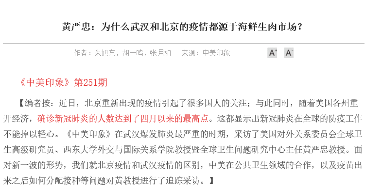此外,北京疫情期间,朱旭东同学就北京疫情和武汉疫情的区别、中美在公共卫生领域的合作、以及疫苗研发成功后如何分配接种等问题,采访了美国对外关系委员会全球卫生高级研究员黄严忠教授。谢鸿雁同学则就疫情对于美国的影响、美国总统大选结果预判、微软收购TikTok一事、以及中美关系未来走向采访了美国丹佛大学中美关系中心主任赵穗生教授。