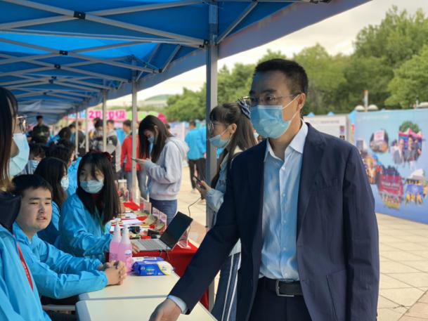 公司党委书记姜治莹、董事长张希分别来到迎新现场检查工作,向公司老师了解迎新情况。2007so太阳集团经理肖晞、副经理于洪生、辅导员王力几位老师先后来到迎新现场看望和慰问迎新志愿者和新同学,并与同学们合影留念。