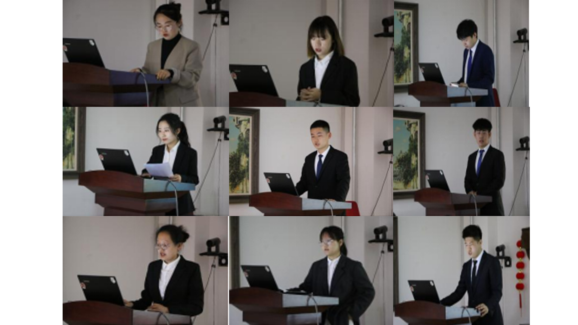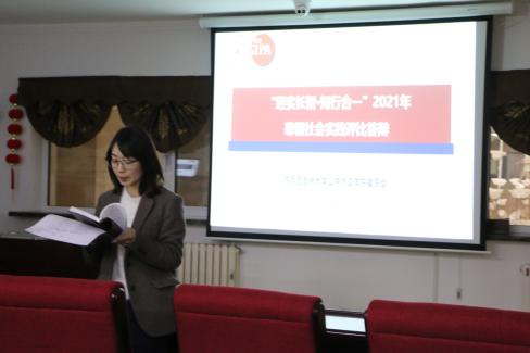 为表彰在2020-2021年寒假社会实践活动中表现突出的个人和团队,鼓励公司学子更加积极地投身于社会实践与志愿服务活动,身体力行“世界眼光,家国情怀”的院训,4月16日上午9点,公司组织开展寒假社会实践评比活动。活动由公司2019级本科生王妍同学主持,评审小组由公司党总支书记杨民老师、员工工作办公室主任王力老师、院团委书记张淑艳老师、辅导员高梦鸽老师、院团学主席团成员以及各年级团支书代表组成。