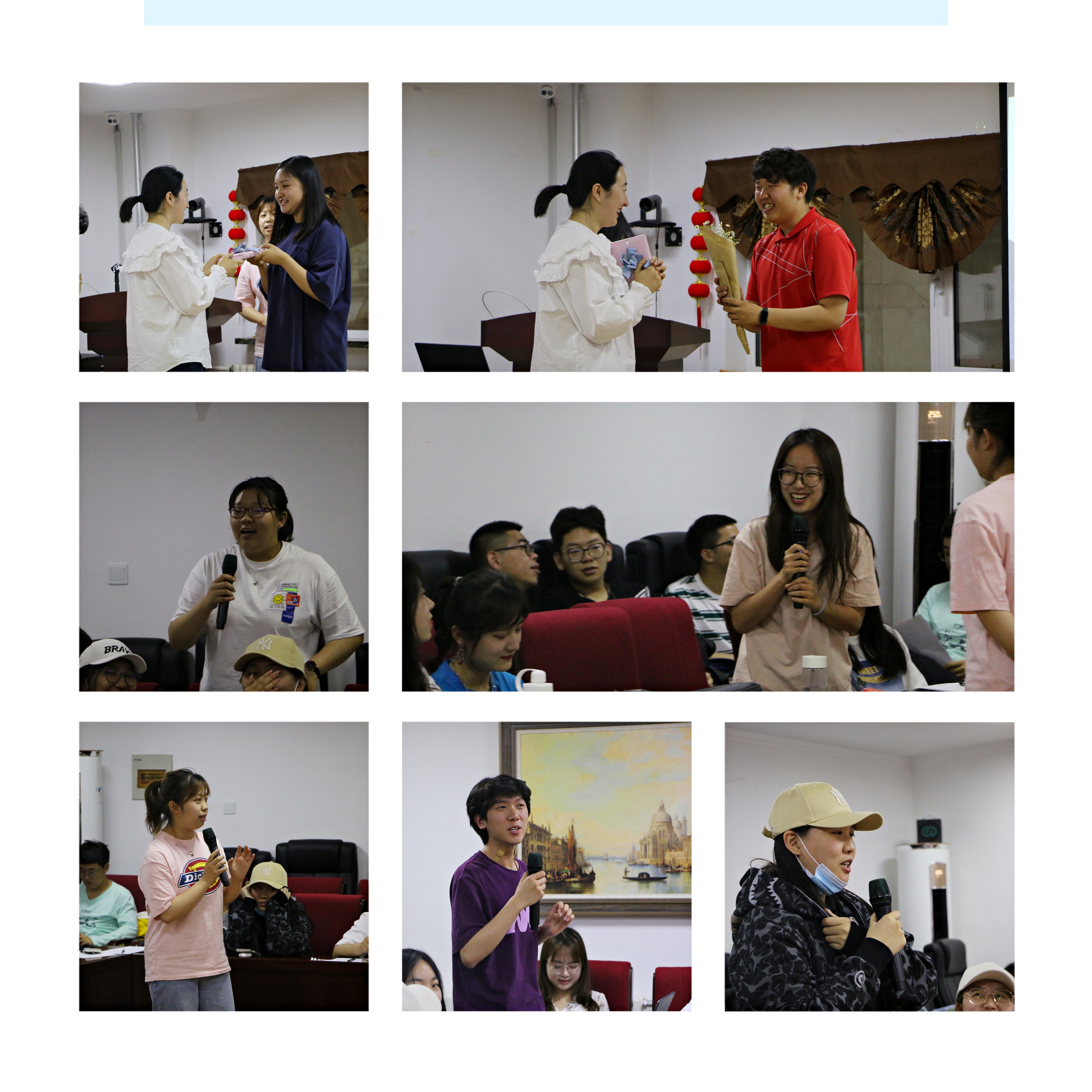 看完视频,班长组织同学们畅谈与梦鸽老师的回忆和想对老师说的话,大家纷纷举手互动,表达心中的感谢和祝福。爱意满满的鲜花、蛋糕和写满祝福的留言册,让班会现场充满了温馨。