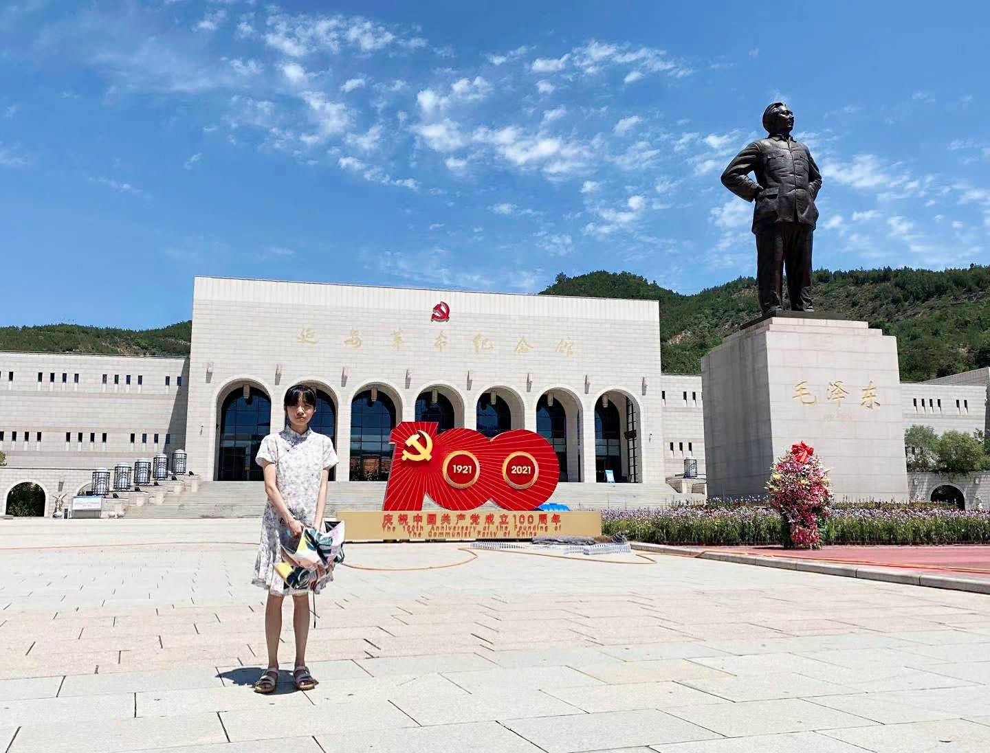 8月1日,小组成员武肖隽楠前往延安革命纪念馆进行参观。1950年7月建立的延安革命纪念馆集中展示了中共中央在延安和陕北领导中国革命的丰功伟绩,是新中国成立后建成的最早的革命纪念馆之一。陈列有陕甘宁边区政府时期党的施政纲领、工作路线等重要文件和许多珍贵的实物资料。走进正厅门,映入眼帘的便是两侧的“红军长征的落脚点”和“夺取全国胜利的出发点”大型群雕,体现着延安在中国革命的历史地位。