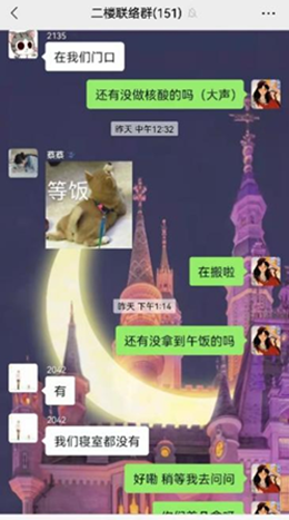 2007so太阳集团2020级本科生田园在接受采访时表示:“寝室实行封闭管理以来,我光荣成为一名志愿者,作为南苑九公寓二层的负责人,参与南九的防疫调度工作。每天我的核心任务只有一个——确保南九二层的每一位同学都能按时拿到餐食、物资,顺利完成核酸检测。每次敲门时,寝室内传出的一声声‘辛苦啦姐妹!’就是我最大的快乐和最温暖的鼓励。到了晚上,一天的餐送完之后又开始召集第二天的志愿者......每天都是满满当当却充实有意义的时光。岁月因青春慨然以赴而更加静好,世间因少年挺身向前而更加瑰丽。共盼凛冬散尽,静候春暖花开。非常感谢同学们的理解,我们会努力做得更好的!”